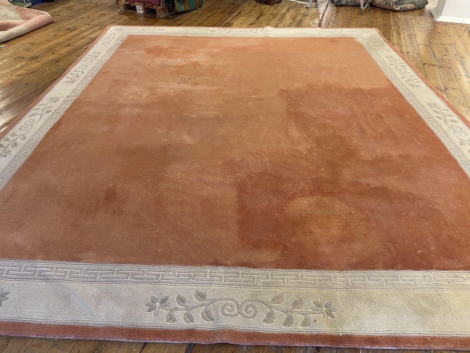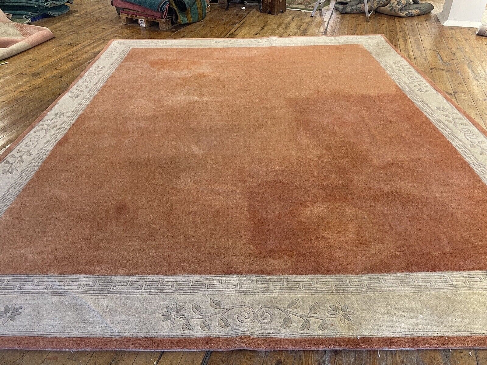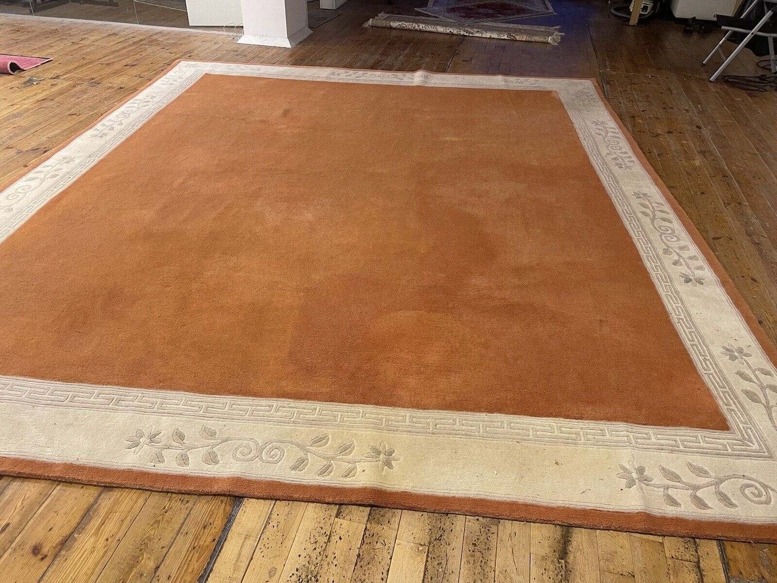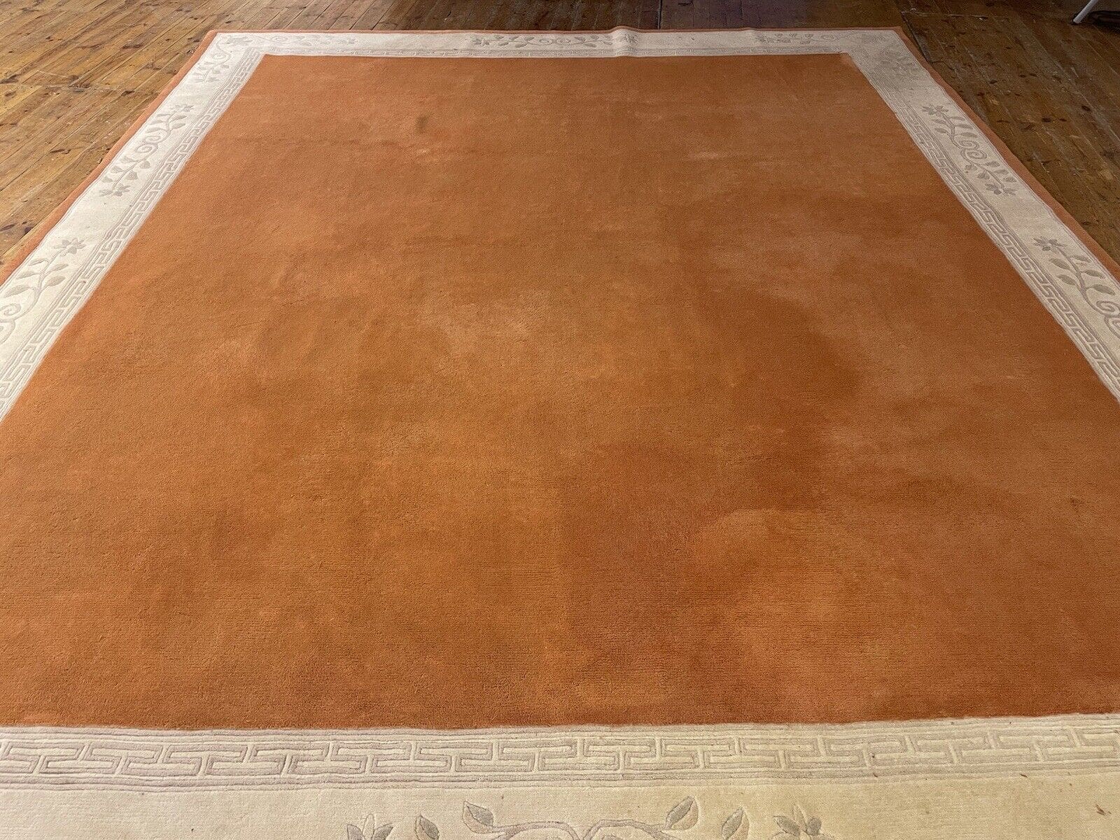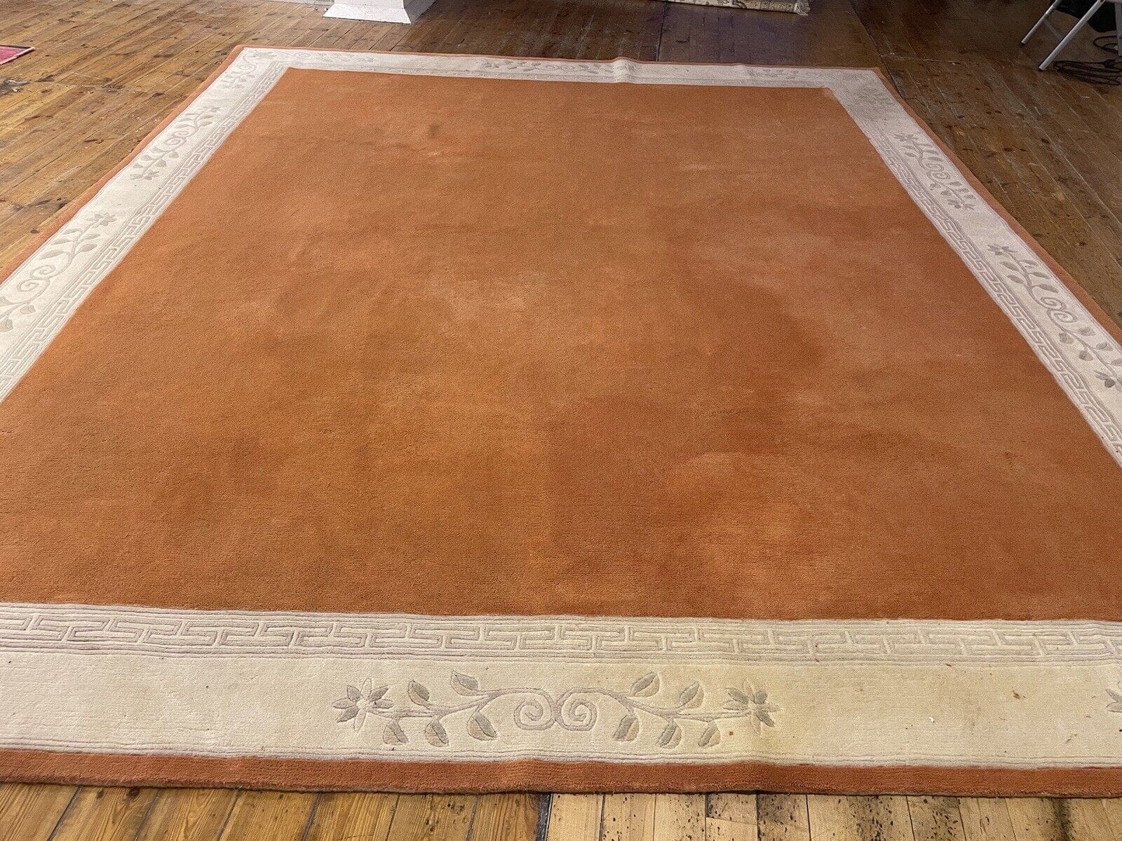 Handgeknüpfter Teppich aus Schurwolle | Größe: 400×350 cm | Florhöhe: 15 mm | Muster: Abstrakt | Farben: Orange und Braun | Für Fußbodenheizung geeignet | Zustand: Neu ohne Etikett | Herstellungsland: Nepal | Stil: Europäisch | Material: Wolle und Baumwolle