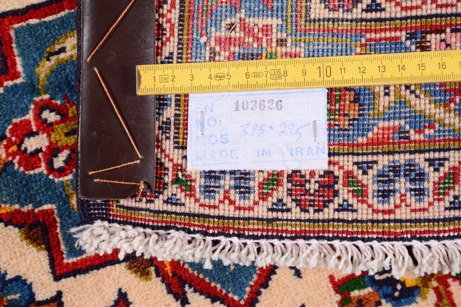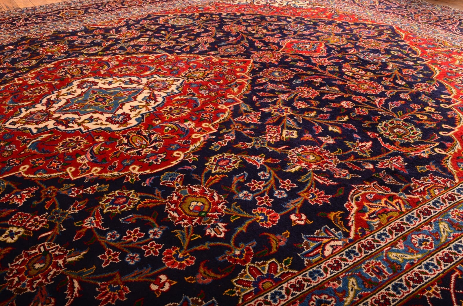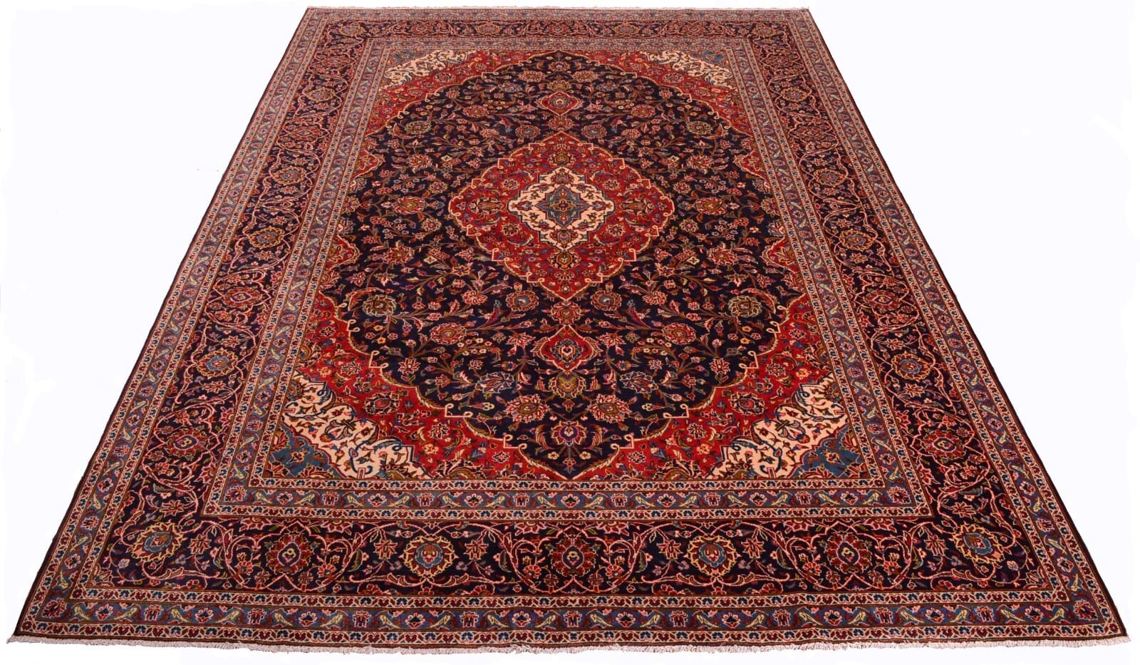 Handgeknüpfter Orientteppich Kashan | Knotendichte: 350.000 Knoten/m² | Material: 100% Schurwolle und 100% Baumwolle | Größe: 397 x 296 cm | Zustand: Sehr gut, unbenutzt | Stil: Klassisch, florales Medaillon-Muster | Herkunft: Persien | Für Fußbodenheizung geeignet