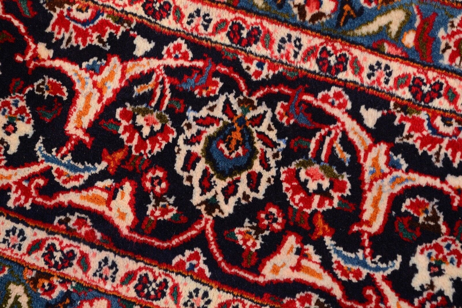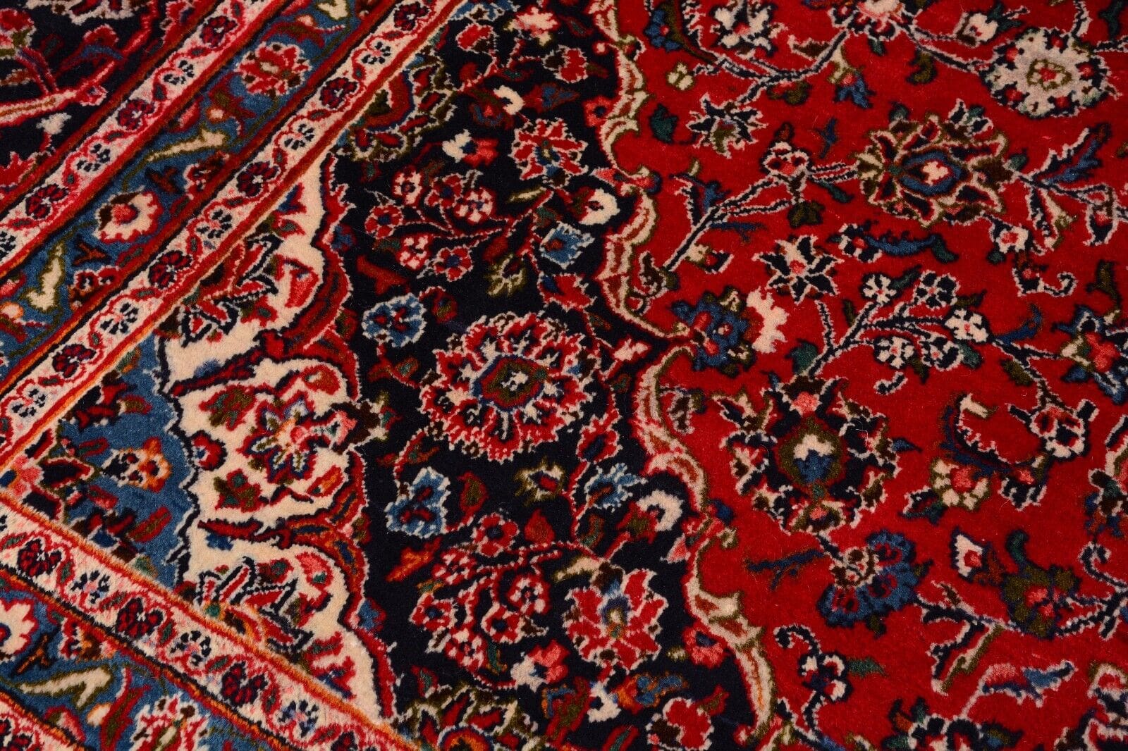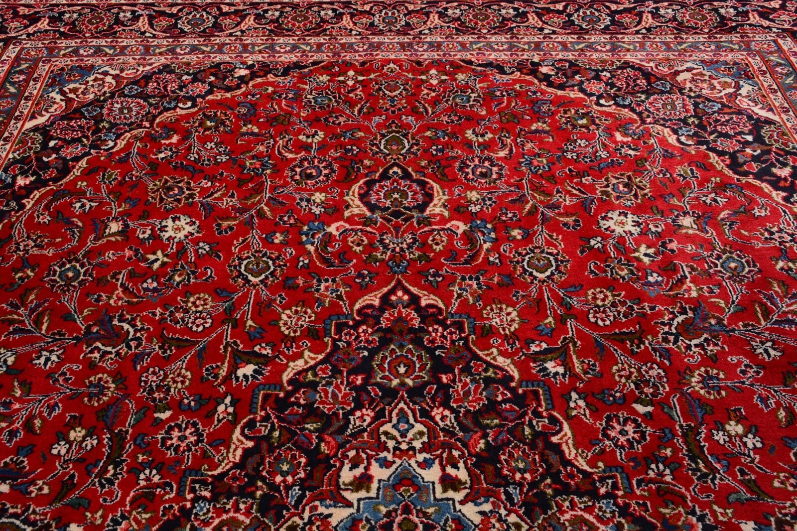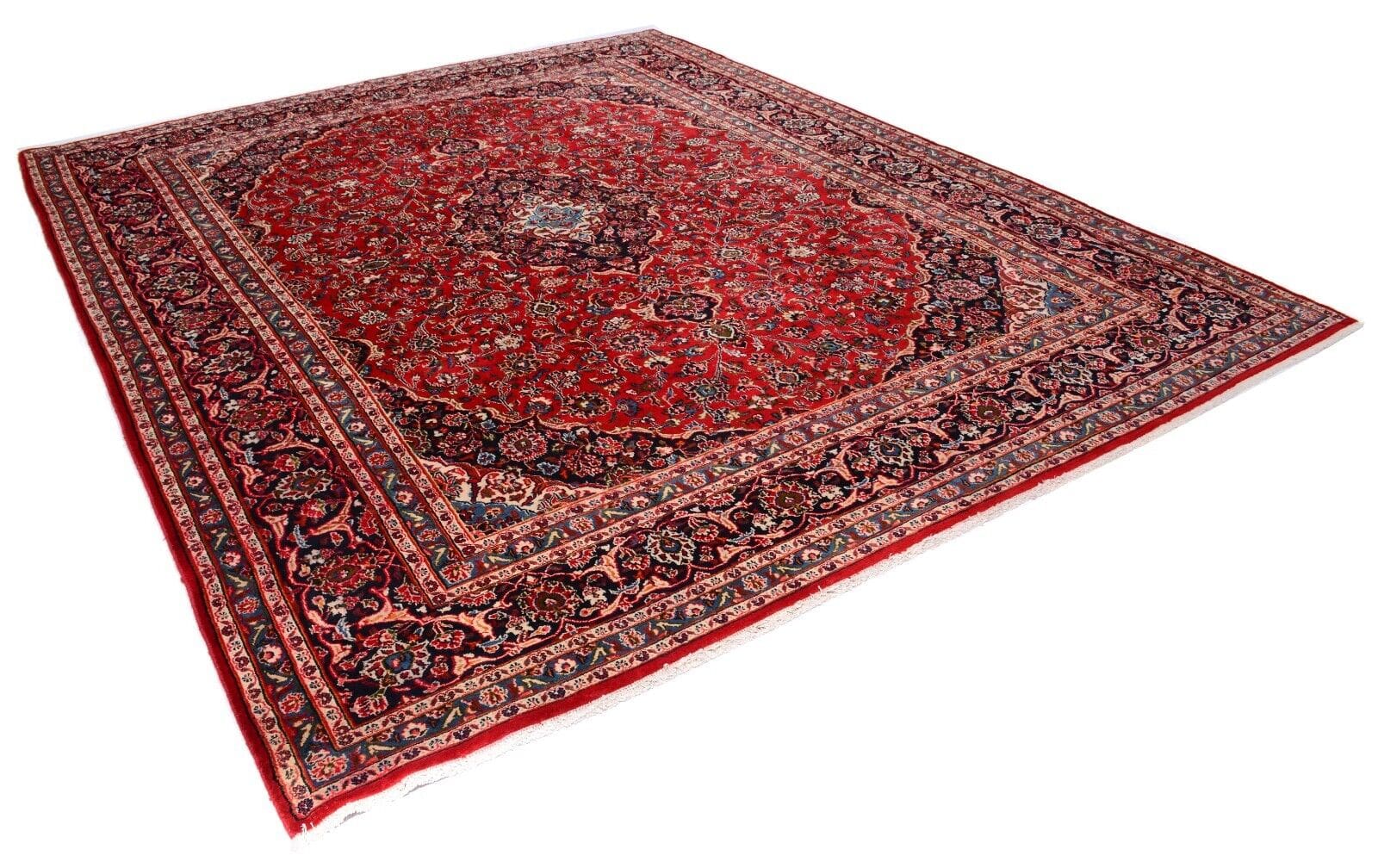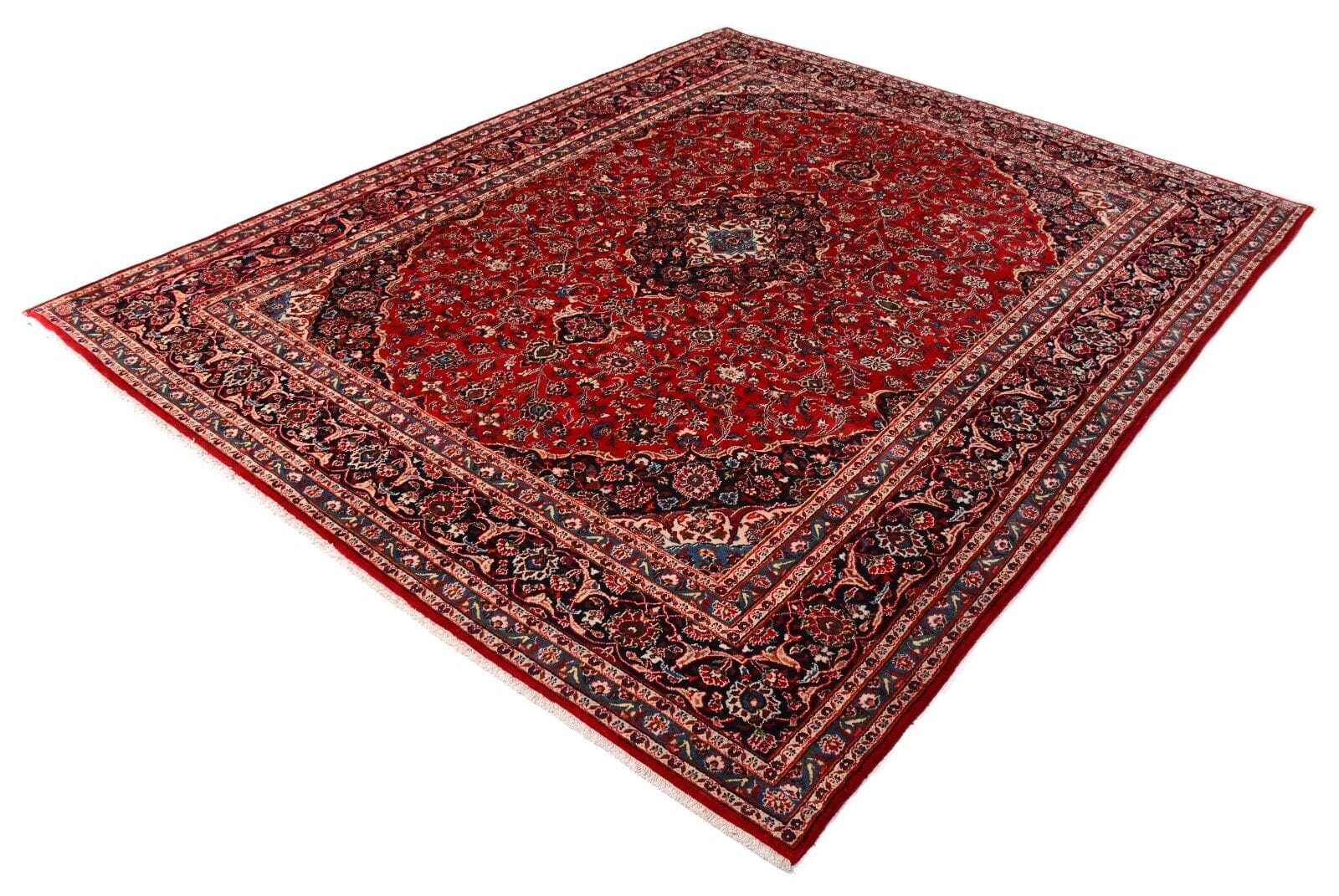 Handgeknüpfter persischer Teppich | Größe: 378 x 295 cm | Muster: Florales Medaillon | Knotendichte: 300.000 Knoten/m² | Material: 100% Schurwolle, Kette aus 100% Baumwolle | Dicke: ca. 12 mm | Alter: 25 Jahre | Zustand: Sehr gut | Herkunft: Persien | Gewicht: ca. 4 kg/m² | Für Fußbodenheizung geeignet | Traditionell orientalischer Stil