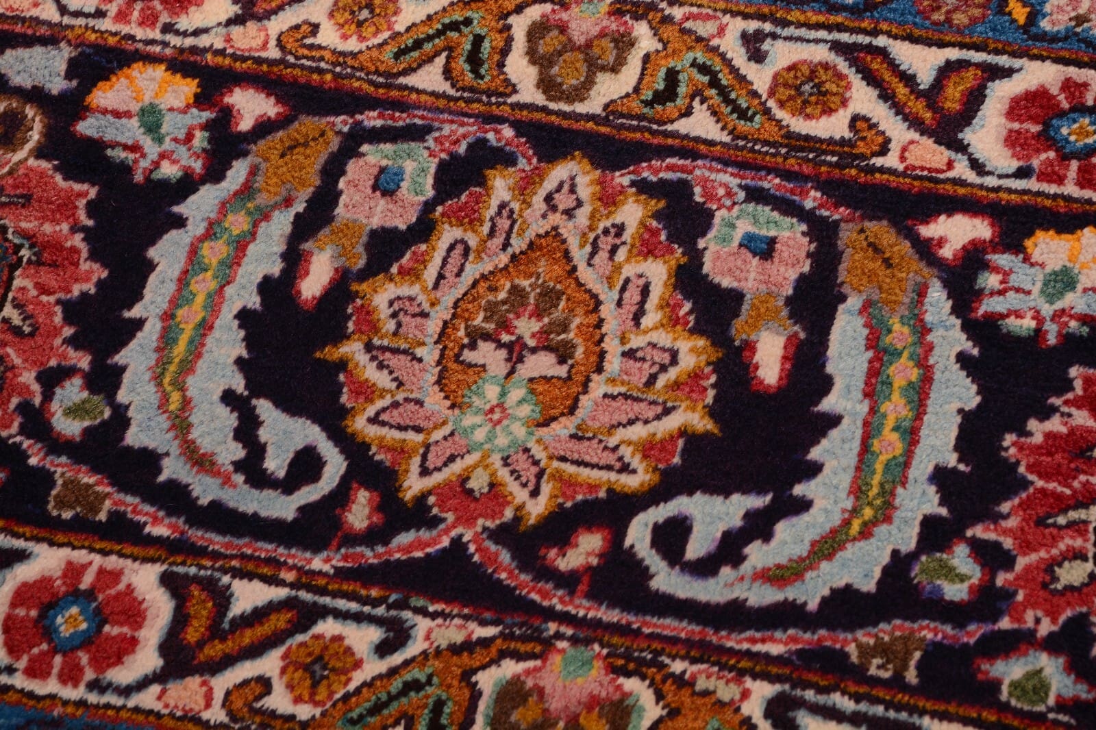 Der Zustand des Teppichs ist ein weiterer Aspekt, der ihn zu einem besonderen Stück macht. Er ist in ausgezeichnetem Zustand, was bedeutet, dass Sie in jede Ecke Ihres Raumes ein Element von Eleganz und Raffinesse bringen können, ohne auf Qualität zu verzichten.