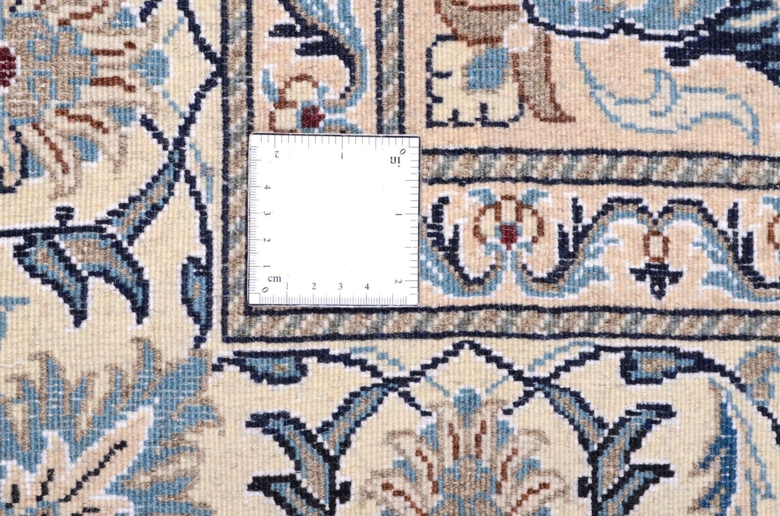Der handgeknüpfte Perserteppich Nain präsentiert sich in einem beeindruckenden Royalblau und ist ein herausragendes Beispiel für hochwertige Teppichkunst. Mit einer Knotendichte von 300.000 Knoten pro Quadratmeter zeugt dieser Teppich von höchster Handwerkskunst und Liebe zum Detail. Sein Floralmotiv mit Medaillon bringt einen Hauch von Eleganz in jeden Raum und macht ihn zu einem echten Blickfang.