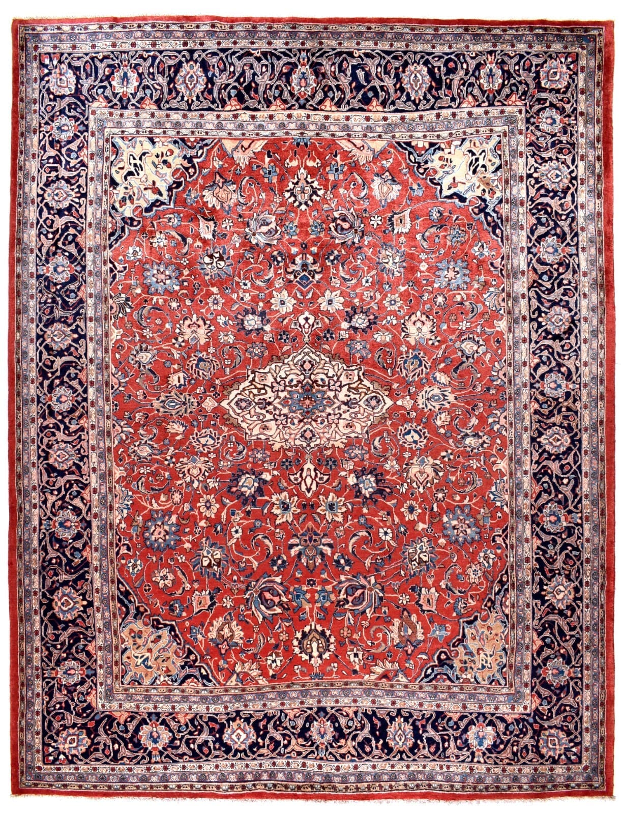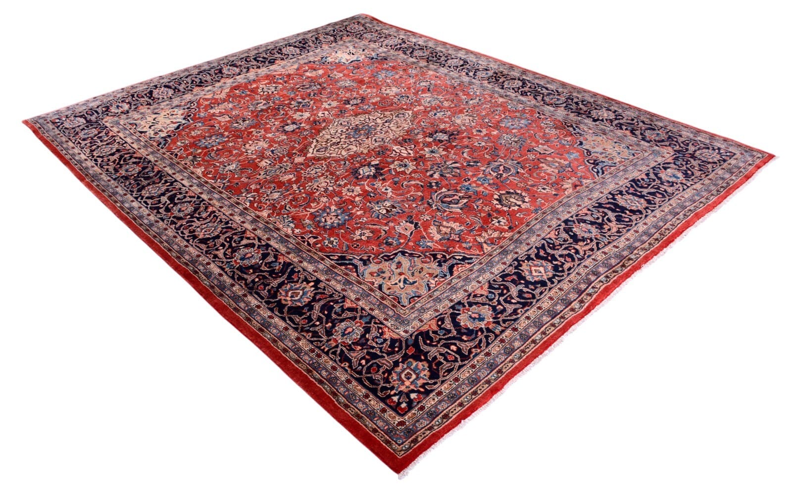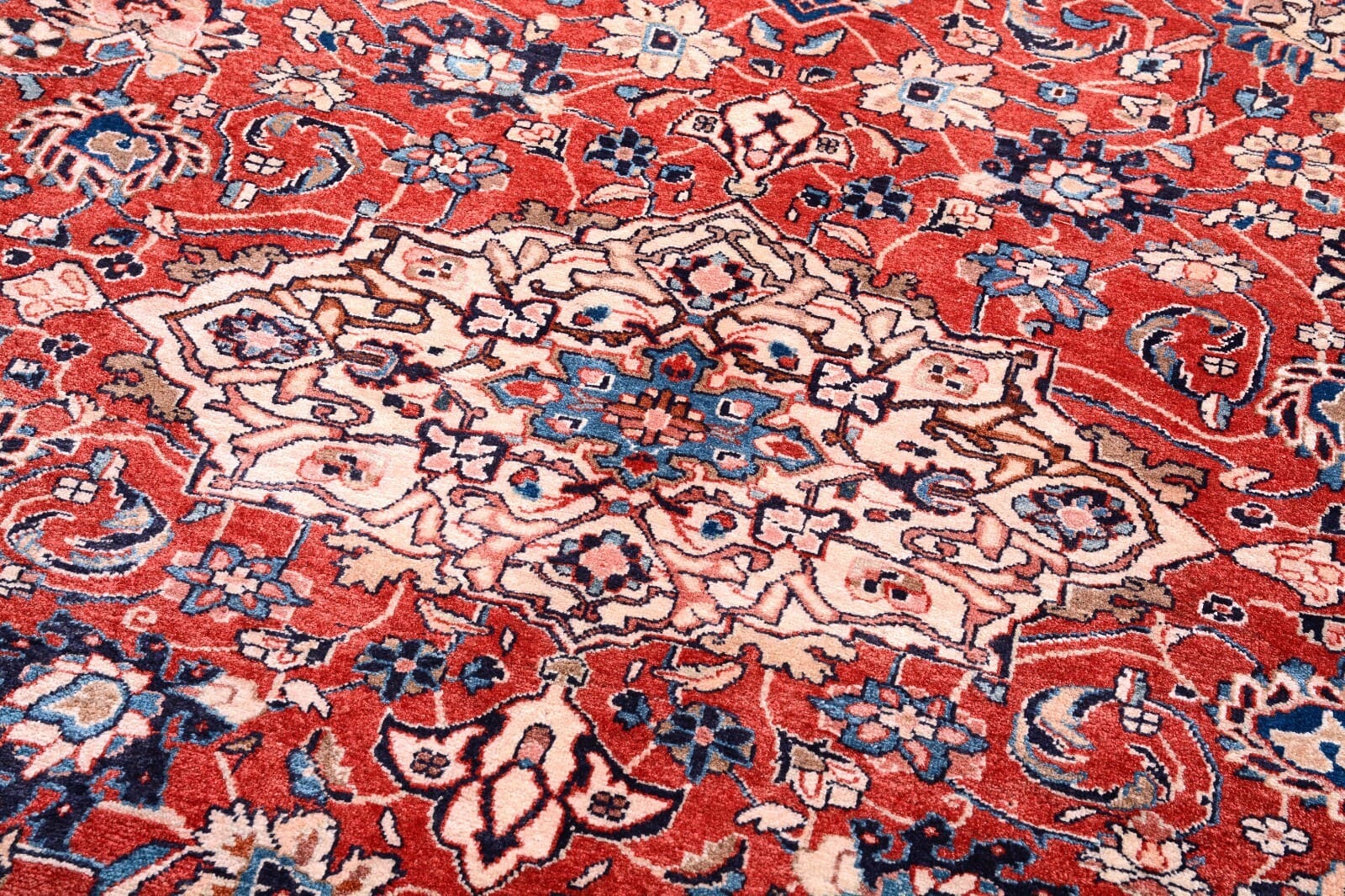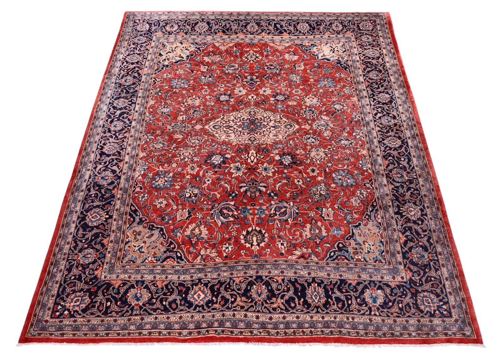 Handgeknüpfter Orientteppich Sarough | Größe: 377 x 297 cm | Knotendichte: 200.000 Knoten/m² | Material: 100% Schurwolle, Kette aus 100% Baumwolle | Zustand: Perfekt, 60 Jahre alt | Muster: Florales Medaillon | Dicke: ca. 12 mm | Gewicht: 4 kg/m² | Herkunft: Persien | Für Fußbodenheizung geeignet | Stil: Traditionell Orientalisch/Persisch