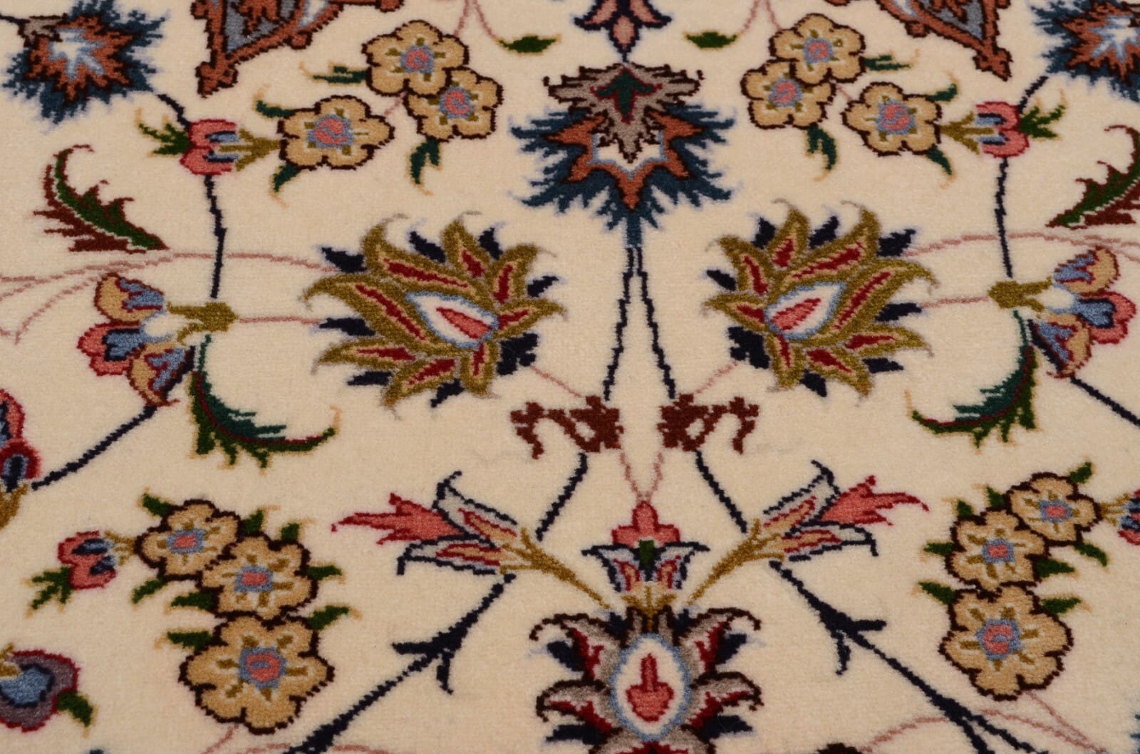 Der florale Stil dieses Tabriz-Teppichs zeigt eine Vielzahl von Blumen- und Pflanzenmotiven, die sich harmonisch über die gesamte Fläche des Teppichs verteilen. Solche Motive sind typisch für die persische Teppichkunst und symbolisieren oft Fruchtbarkeit und das Leben. Das Zusammenspiel von Farben und Formen macht jeden Teppich zu einem einzigartigen Kunstwerk, das sowohl in modernen als auch in traditionellen Einrichtungsstilen hervorragend zur Geltung kommt.