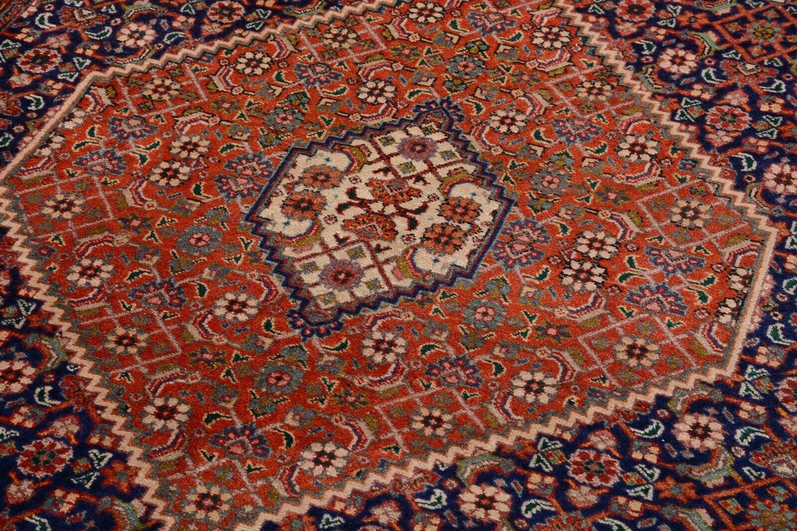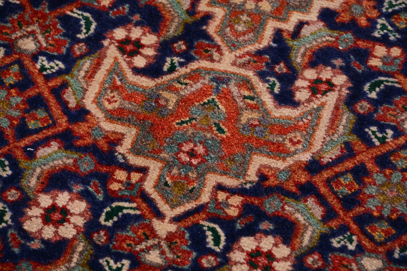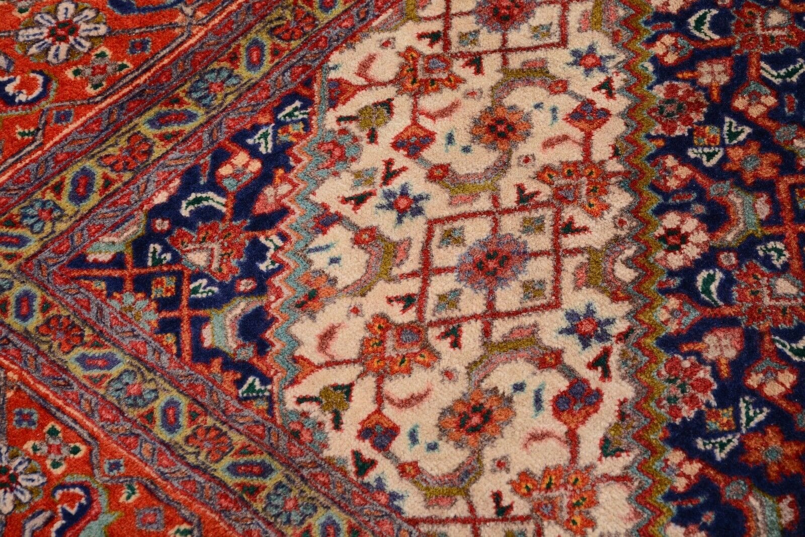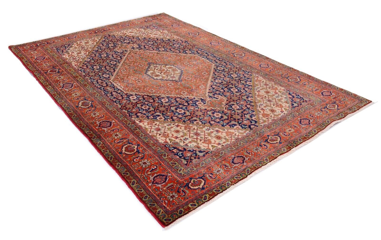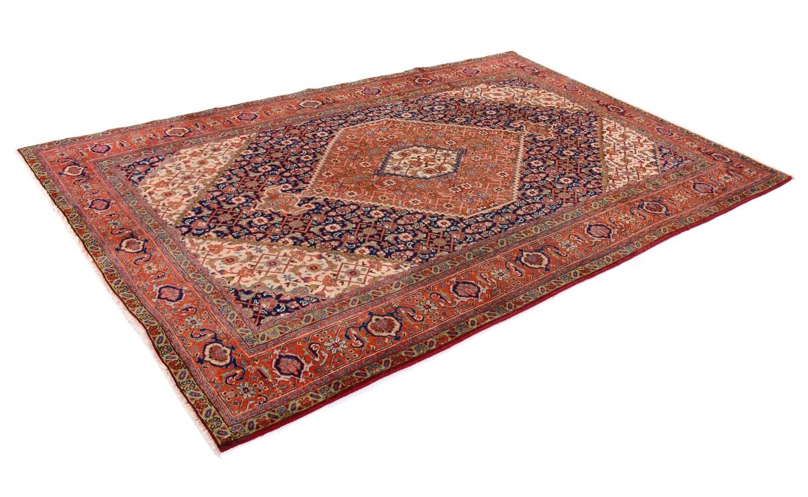 Handgeknüpfter Orientteppich Tabriz | Knotendichte: 300.000 Knoten/m² | Material: 100% Schurwolle | Größe: 296 x 196 cm | Zustand: Sehr gut | Herkunft: Persien | Alter: 25-30 Jahre | Muster: Geometrisches Medaillon | Florhöhe: 10 mm | Geeignet für Fußbodenheizung | Stil: Klassisch