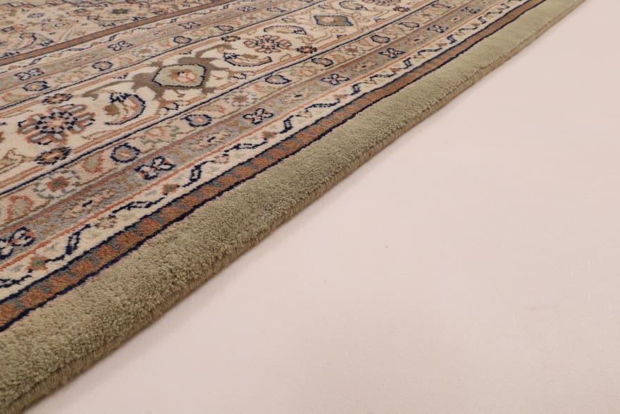 Die kunstvolle Handarbeit, die in das Knüpfen jedes einzelnen Knotens fließt, zeugt von der Leidenschaft und Hingabe der Teppichknüpfer. Zudem fungiert dieser Teppich nicht nur als Raumdekoration, sondern erzählt eine Geschichte – eine Geschichte von traditioneller Handwerkskunst und kultureller Identität.