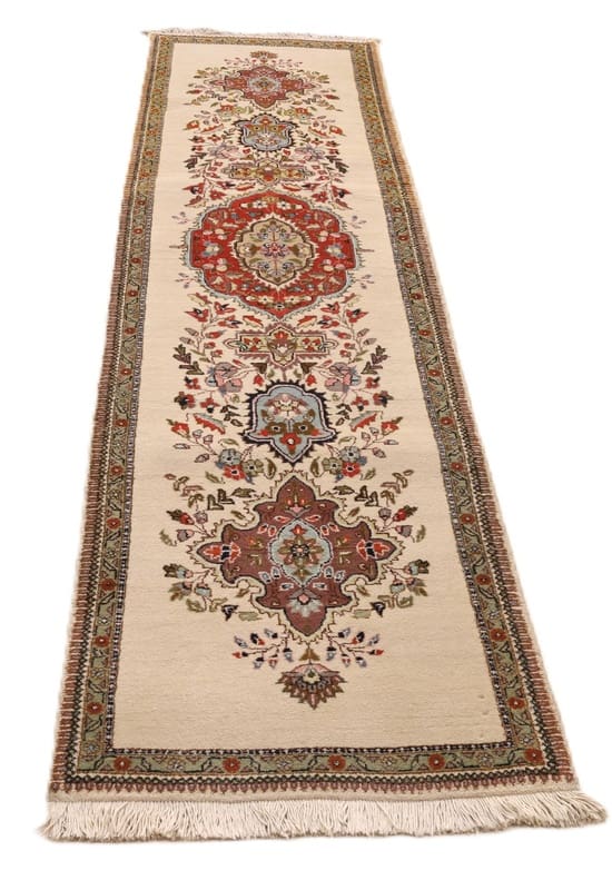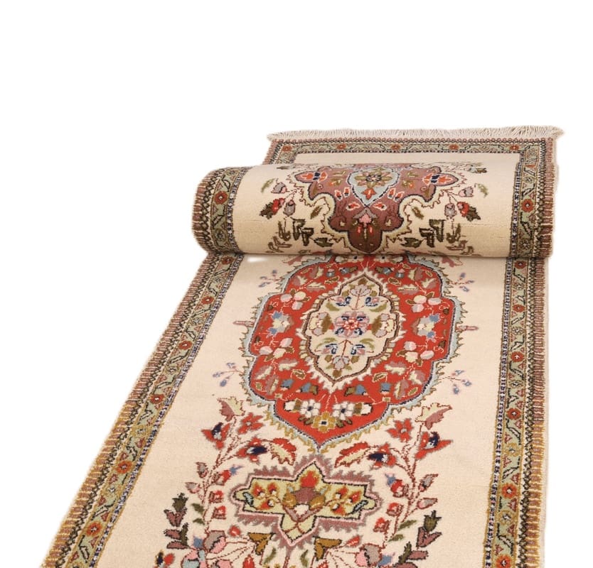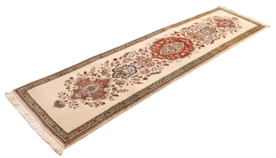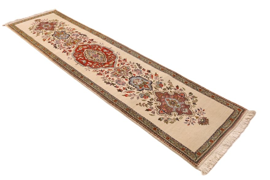 Handgeknüpfter Tabriz Tabatabai Teppich | Größe: 316×84 cm | Knotendichte: 128.000 – 160.000 Knoten/m² | Material: Hochwertige Wolle | Zustand: Neuzeitlich (0-20 Jahre) | Ursprung: Iran/Persien | Farbe: Weiß/Beige | Form: Läufer | Dicke: ca. 8 mm | Gewicht: ca. 9 kg