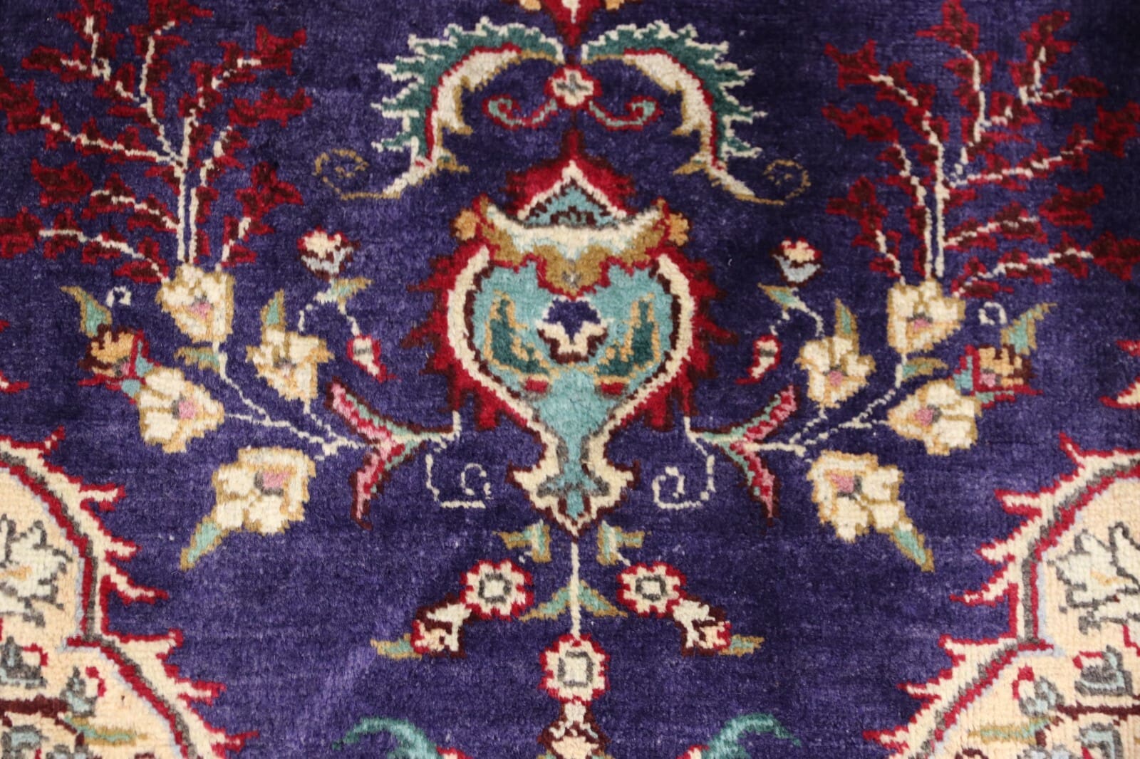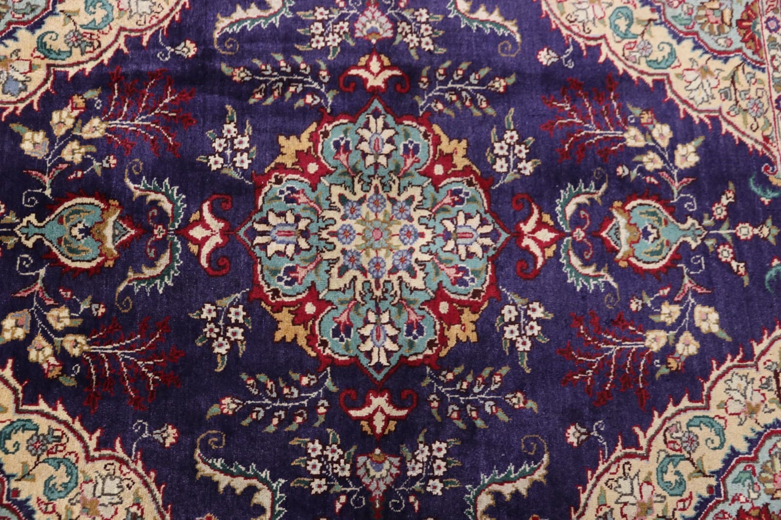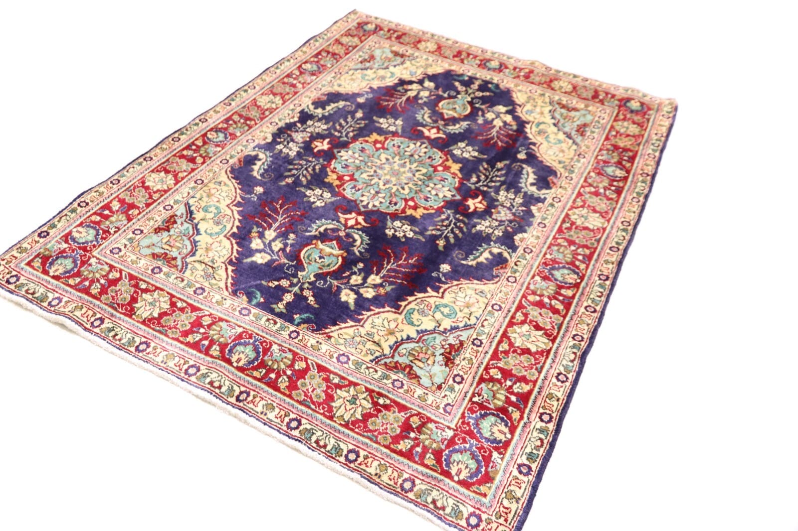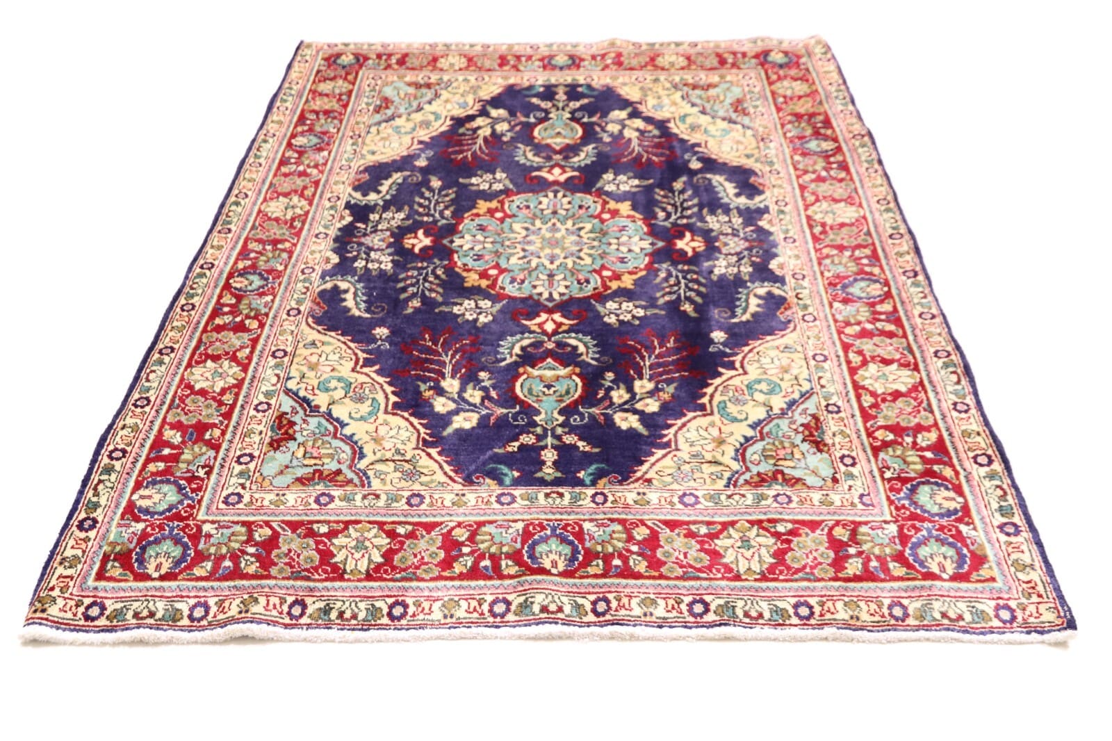 Der Teppich besticht durch eine sorgfältige Auswahl an Farben und Mustern, die typisch für Täbriz sind. Oft werden florale und geometrische Motive kombiniert, um ein harmonisches Gesamtbild zu schaffen. Diese Designs sind nicht nur dekorativ, sondern tragen auch symbolische Bedeutungen, die oft mit Natur und Harmonie in Verbindung stehen. Die Farben sind langlebig undlichtbeständig, wodurch der Teppich auch bei intensiver Nutzung sein ursprüngliches Aussehen bewahrt.