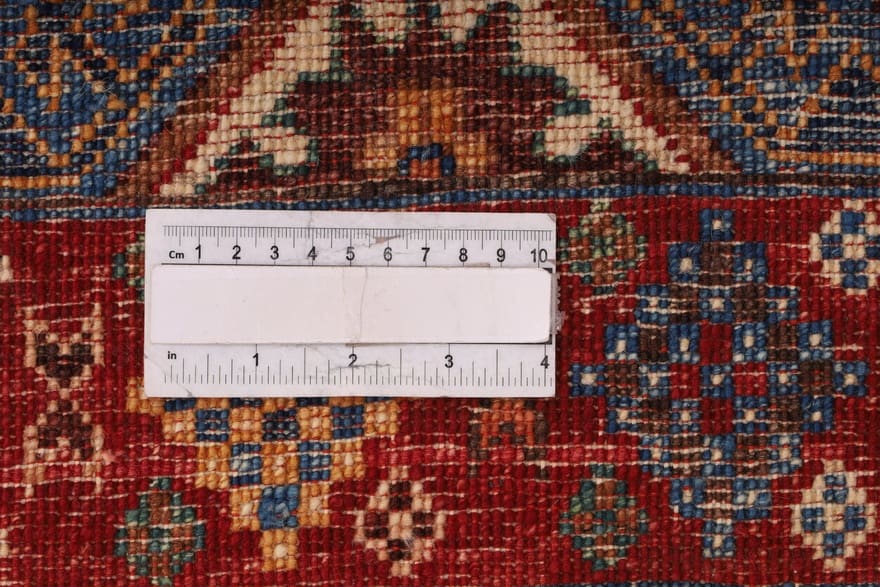Die Knotendichte ist ein weiteres herausragendes Merkmal dieses Teppichs. Eine hohe Knotendichte sorgt für detailliertere Muster und größere Strapazierfähigkeit, wodurch der Teppich nicht nur zur Zierde, sondern auch zur praktischen Bodenabdeckung wird.