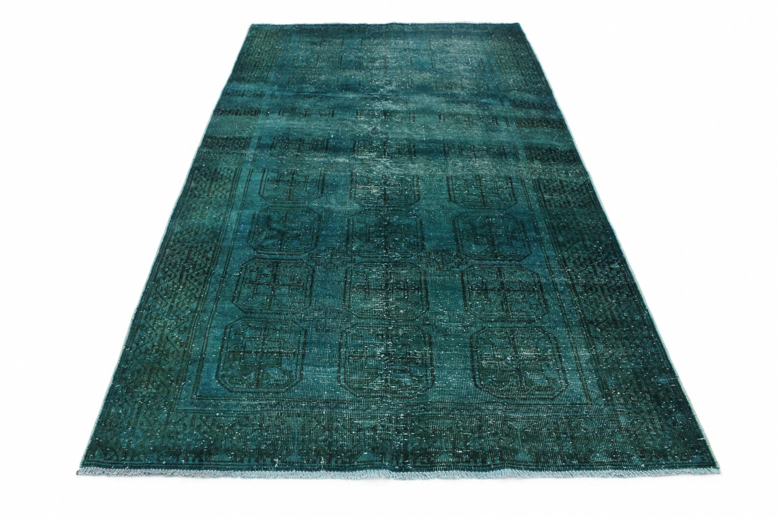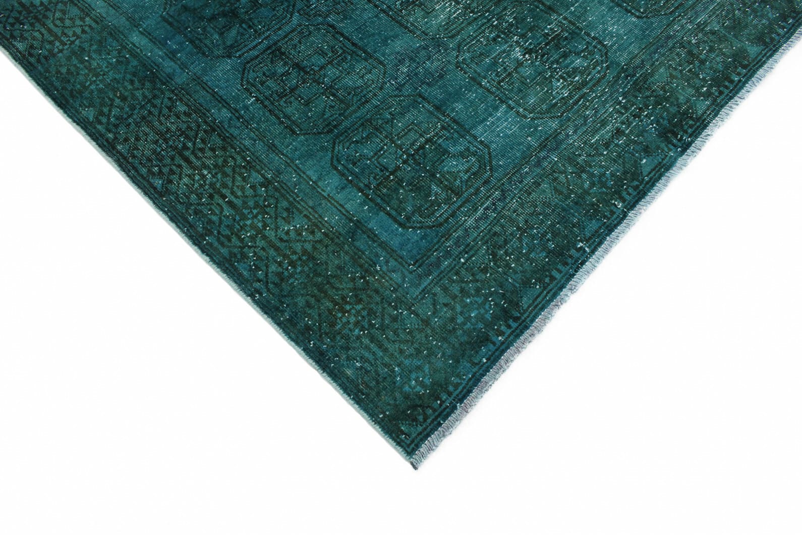 Der Vintage Orientteppich in Türkis besticht durch seinen einzigartigen Farbton, der in Kombination mit den verschiedenen Mustern und symmetrischen Designs lebendige Akzente setzt. Türkis ist eine Farbe, die oft mit Frische und Ruhe assoziiert wird und ideal ist, um ein harmonisches Raum-Ambiente zu schaffen. Die Designs sind nicht nur ästhetisch ansprechend, sondern oft auch mit tiefen symbolischen Bedeutungen versehen, die auf Schutz, Glück und Wohlstand hinweisen.