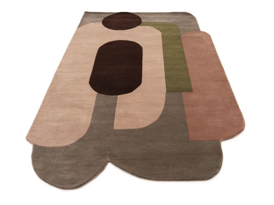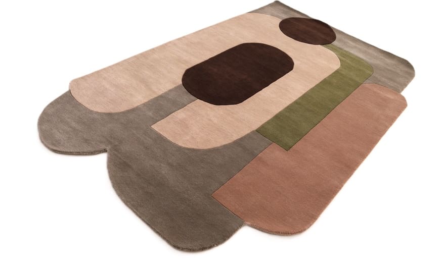 Handgetufteter Teppich | Knotendichte: 200.000 – 250.000 Knoten/m² | Material: Wolle mit Bamboo Seide | Größe: 232×161 cm | Zustand: Neu | Ursprung: Indien | Farbe: Beige, Braun, Grün & Grau | Stil: Abstraktes Design | Dicke: ca. 14 mm | Gewicht: ca. 12 kg