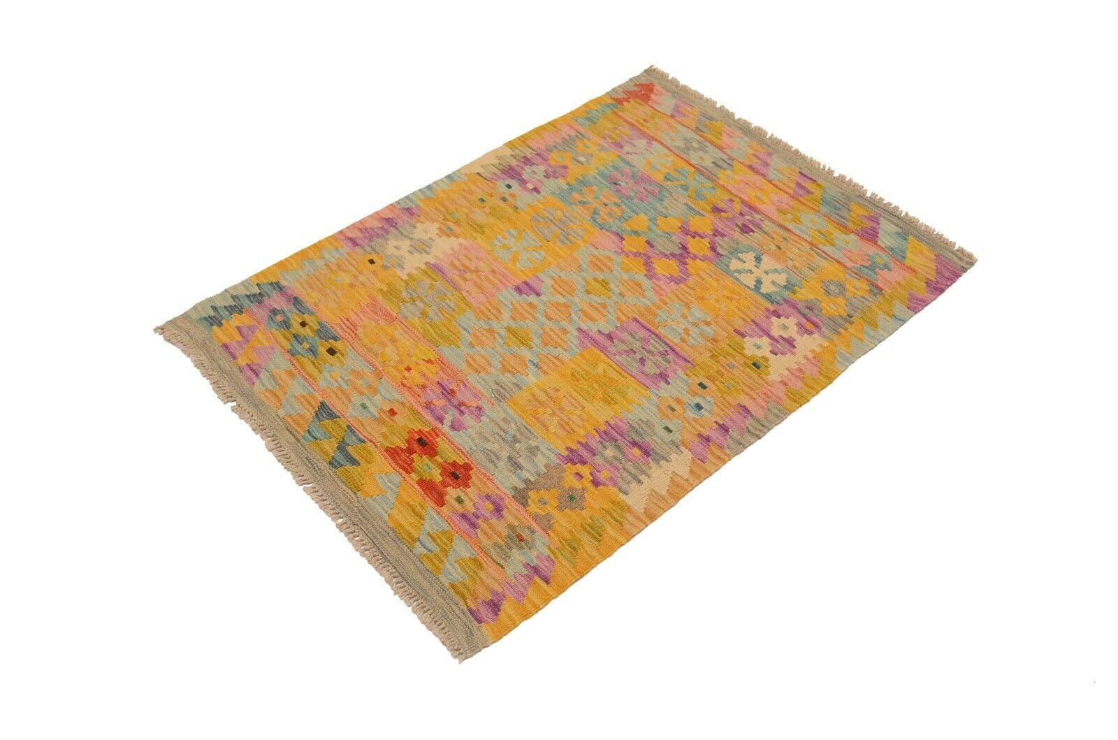 Handgewebter Afghan Kelim | Größe: 121 x 82 cm | Material: 100% Schurwolle | Muster: Geometrisches Allover-Design | Zustand: Neu und perfekt | Herkunft: Afghanistan | Dicke: ca. 4 mm | Gewicht: ca. 2 kg/m² | Für Fußbodenheizung geeignet