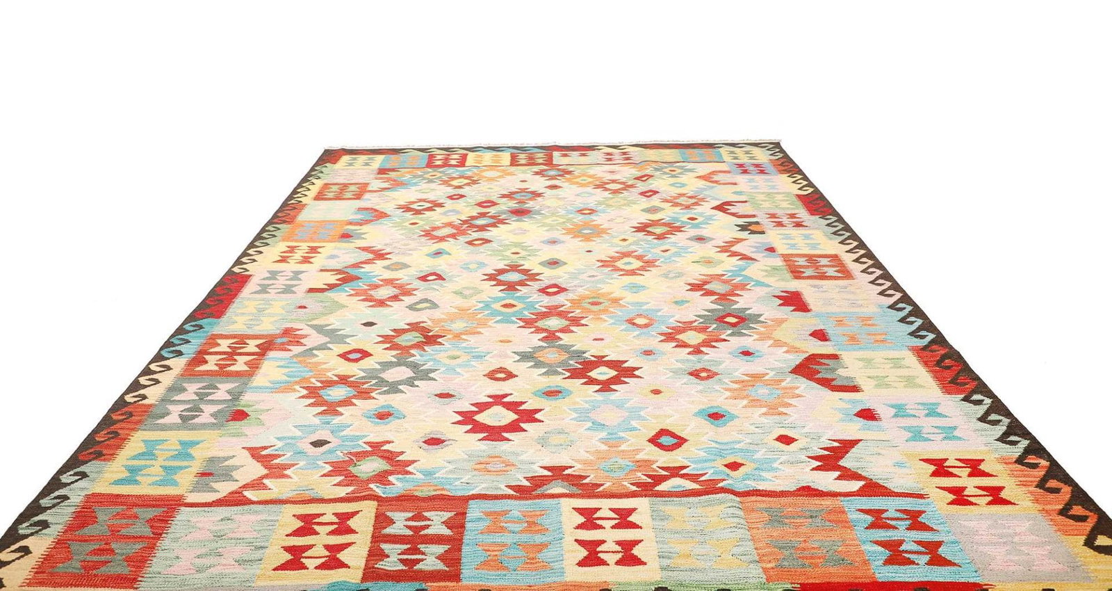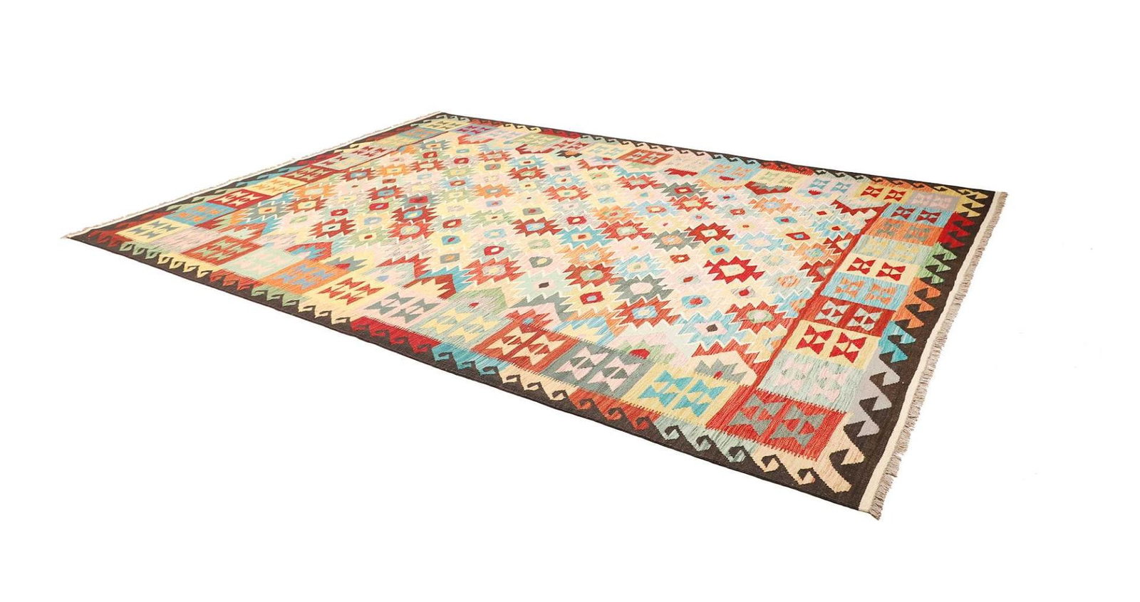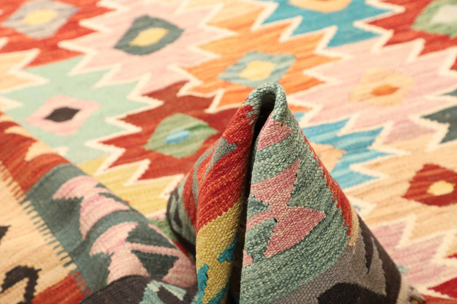 Handgewebter Afghan Kelim 256 x 347 cm, geometrisches Muster, Schurwolle