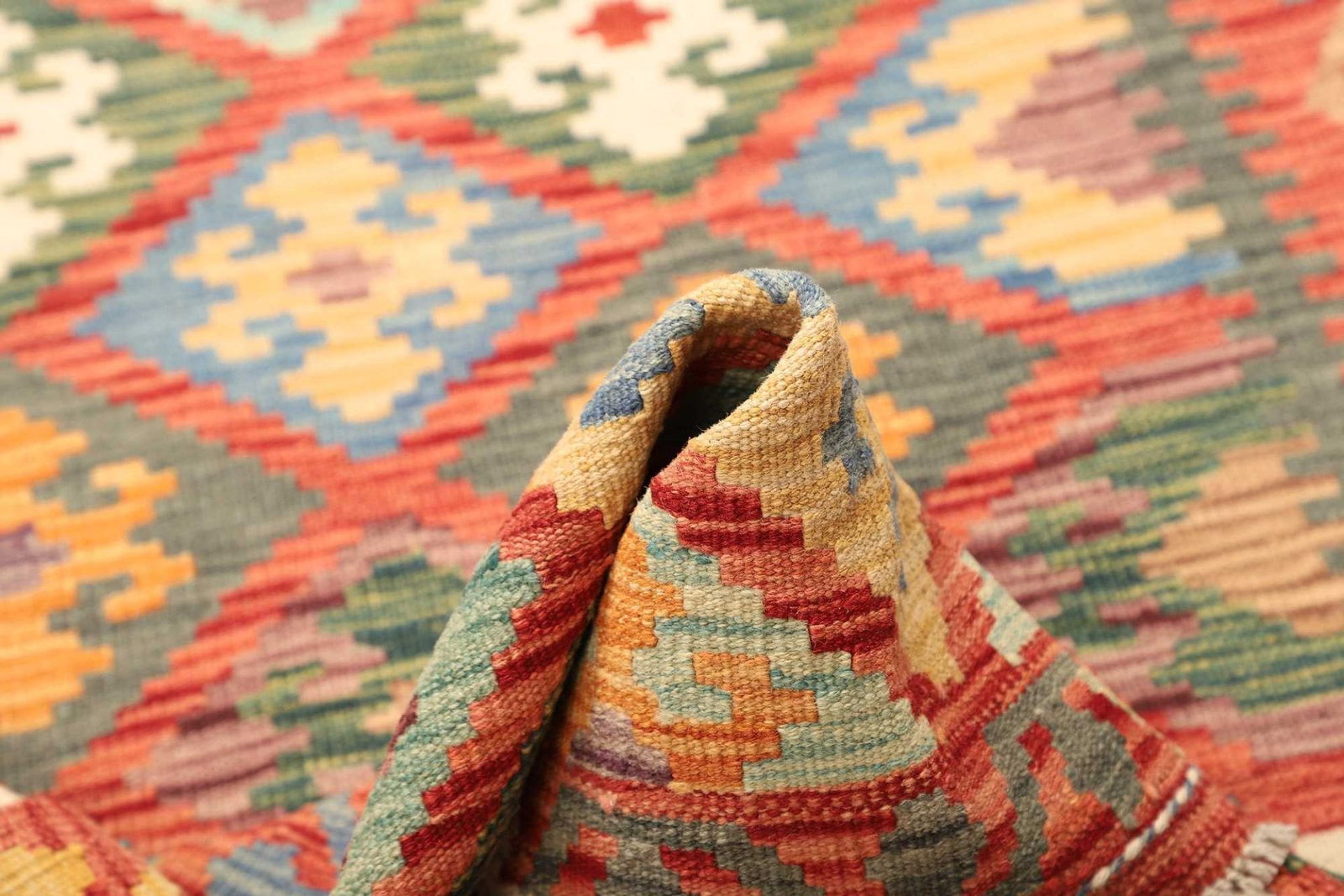 Ein handgewebter Kelim ist nicht nur ein einzigartiges Kunstwerk, sondern bietet auch zahlreiche Vorteile, wie Strapazierfähigkeit, Atmungsaktivität und eine einfache Pflege. Zudem sind die natürlichen Materialien umweltfreundlich, was zu einem gesunden Raumklima beiträgt.