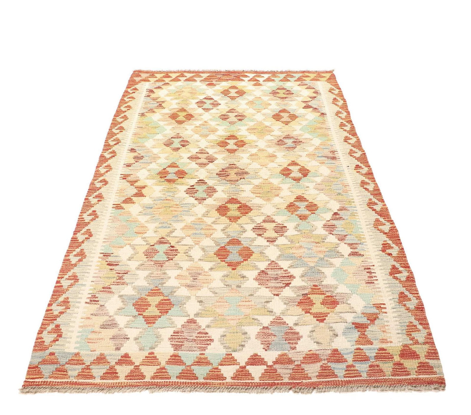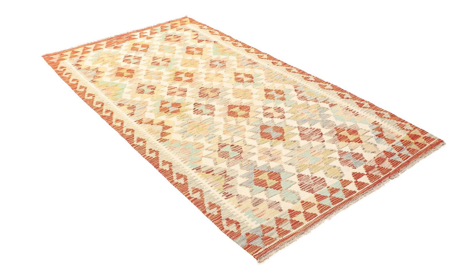 Handgewebter Kelim 110 x 198 cm aus Schurwolle – Rustikaler Orientteppich