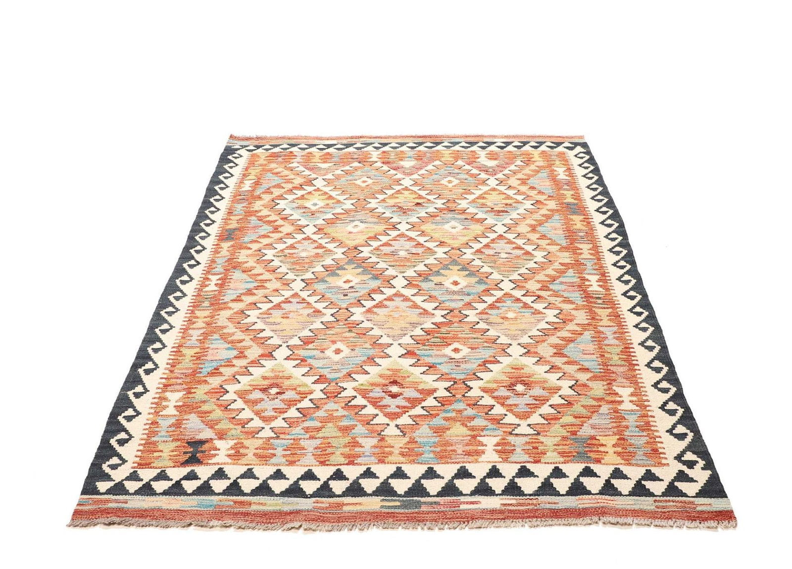 Handgewebter Kelim 129 x 180cm aus Schurwolle – rustikaler Orientteppich