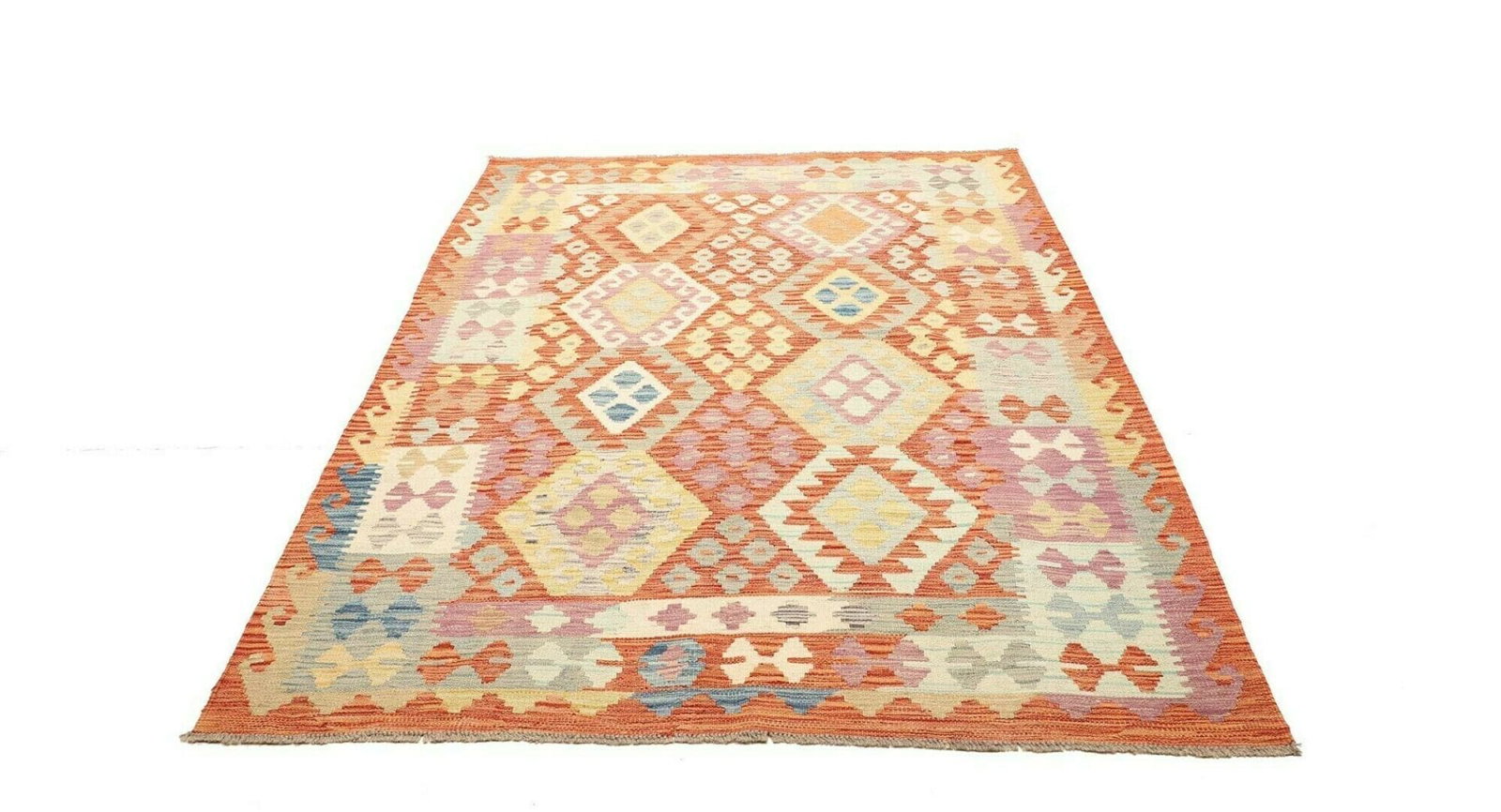 Handgewebter Kelim 156 x 202 cm aus Wolle – Rustikaler Orientteppich