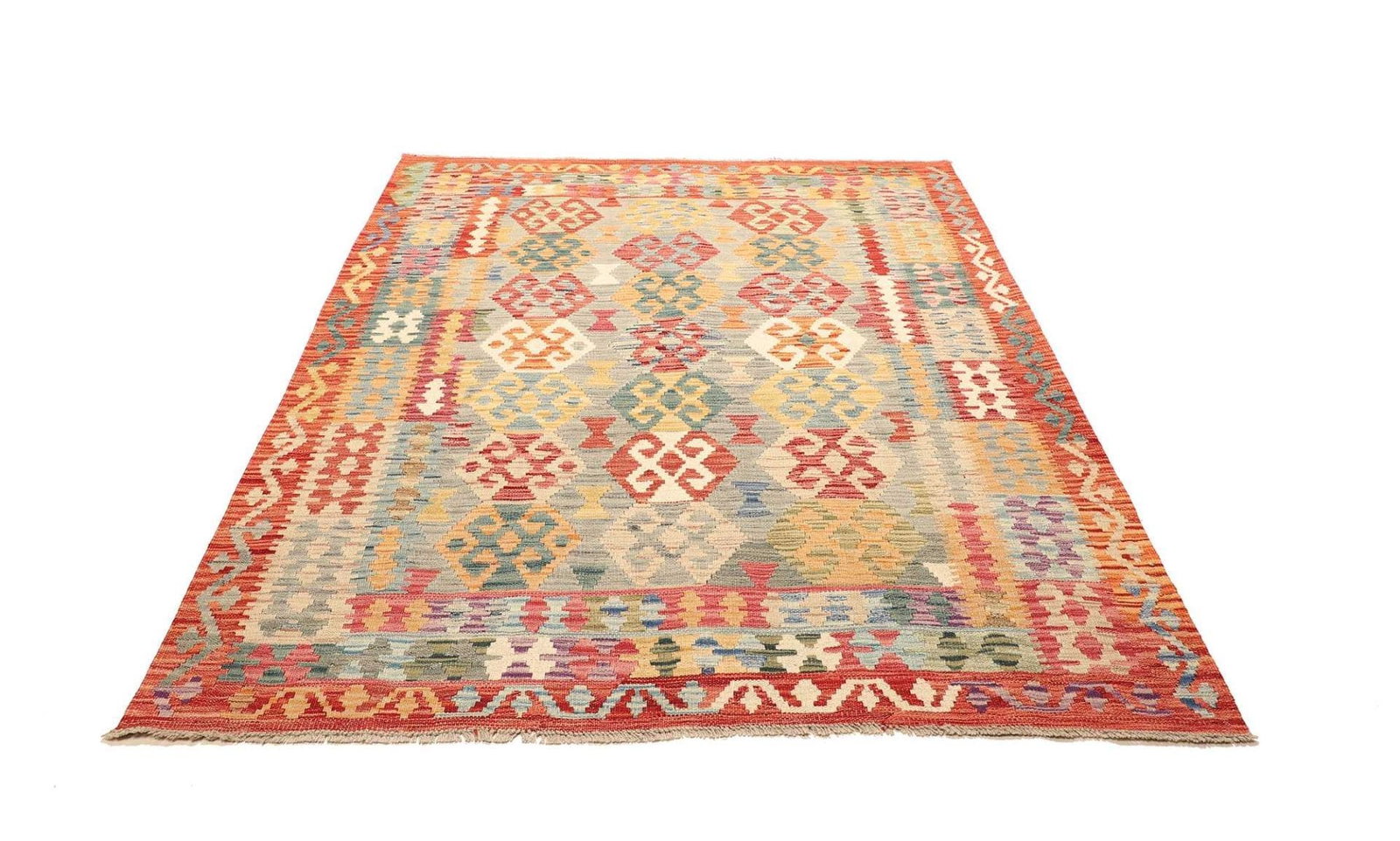 971$ In den WarenkorbKelim 206 x 145 cm – Gewebt mit identischen Mustern auf Vorder- und Rückseite, ideal als Wandbehang, handgewebt, Orientteppich