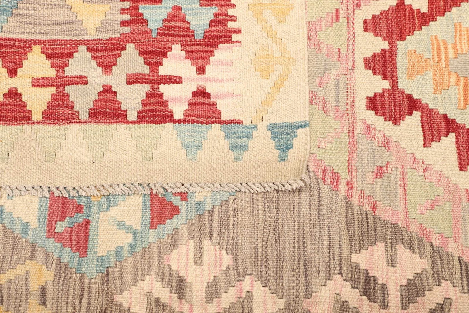 5478$ WeiterlesenKelim 215 x 144 cm – Handgewebt mit identischem Muster auf Vorder- und Rückseite – Orientteppich