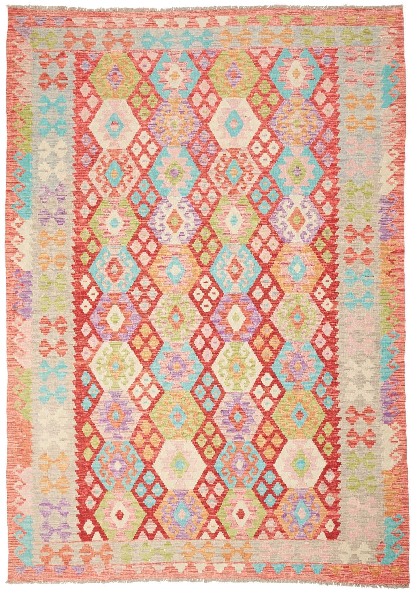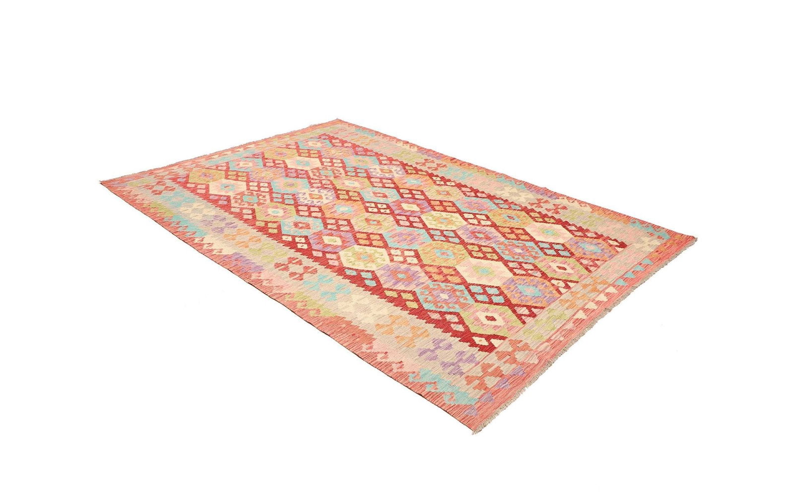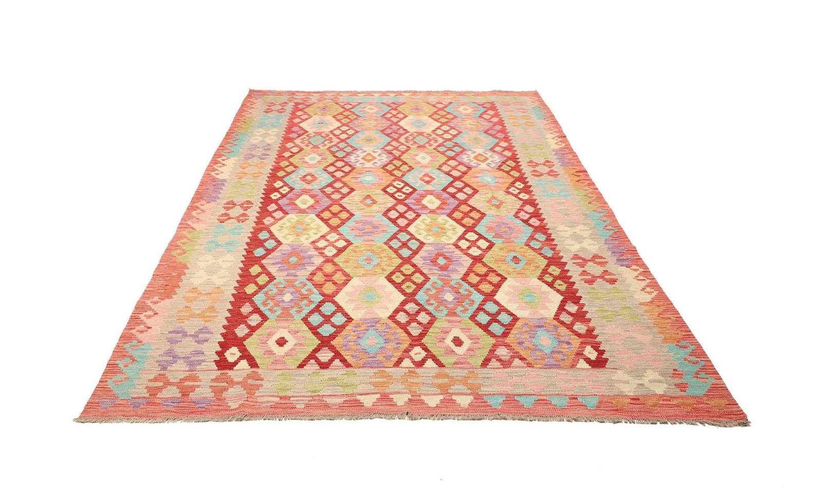938$Ursprünglicher Preis war: 938$785$Aktueller Preis ist: 785$Kelim Teppich | Knotendichte: ca. 200.000 Knoten/m² | Material: 100% Schurwolle & 100% Baumwolle | Größe: 202 x 285 cm | In ausgezeichnetem Zustand | Herkunft: Pakistan | Höhe: ca. 5 mm | Handgewebte Qualität