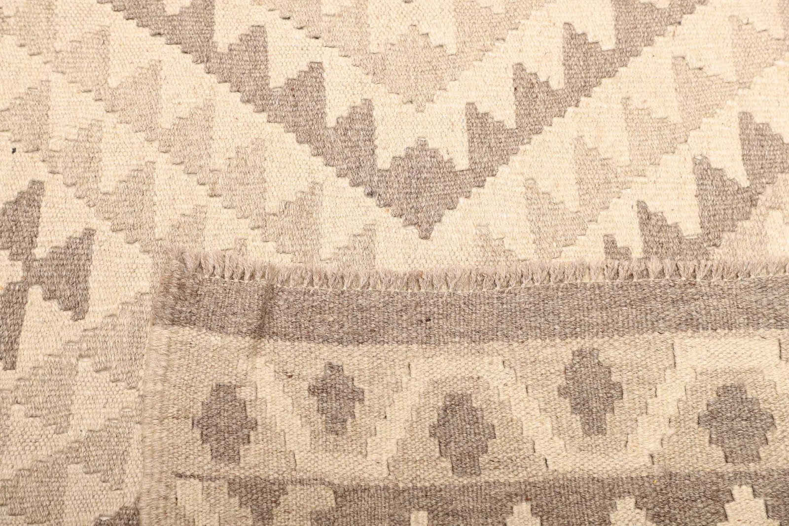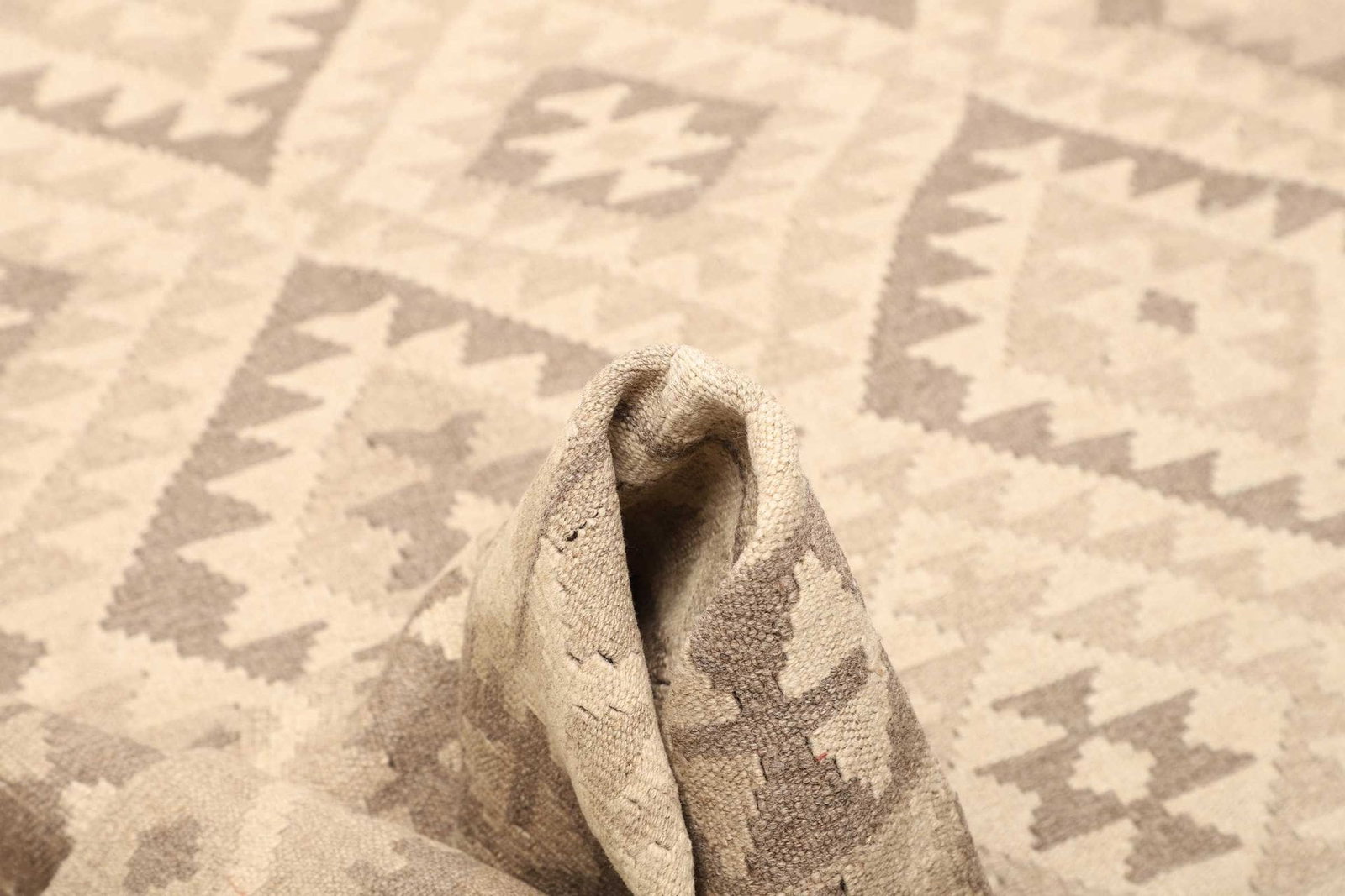 Der handgewebte Kelim besteht aus feinster Schurwolle, die nicht nur für ihre Weichheit und Strapazierfähigkeit bekannt ist, sondern auch für ihre hervorragenden isolierenden Eigenschaften. Schurwolle ist naturbelassen und bietet eine angenehme Haptik. Ihre atmungsaktive Struktur sorgt dafür, dass der Teppich sich gut an verschiedene Raumklimata anpasst. Durch die sorgfältige Verarbeitung der Wolle werden Formstabilität und Langlebigkeit gewährleistet. Die handgewebte Technik, die in der Produktion verwendet wird, unterstreicht die besondere Kunstfertigkeit und das immense Know-how, welches in die Herstellung dieser Teppiche einfließt.