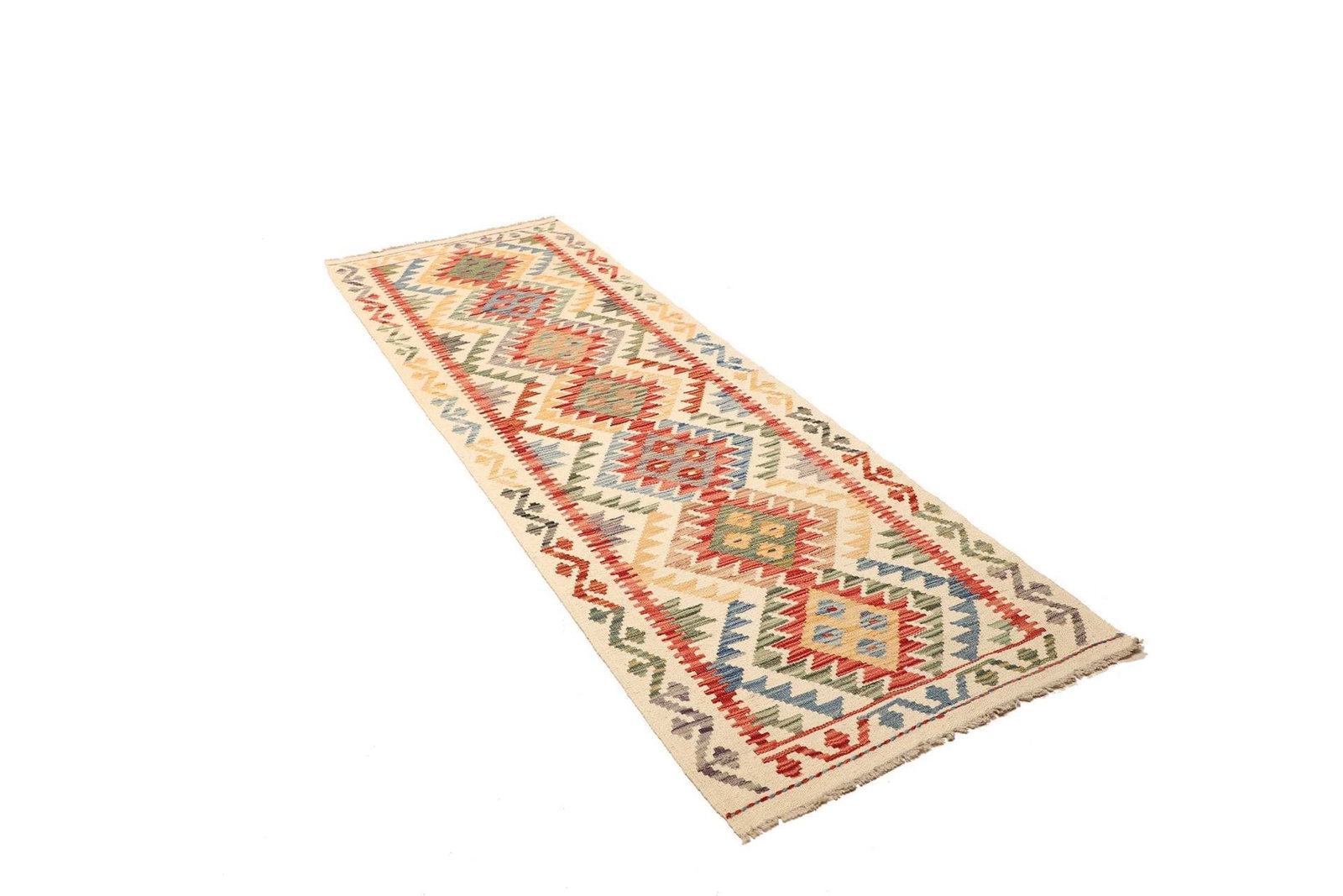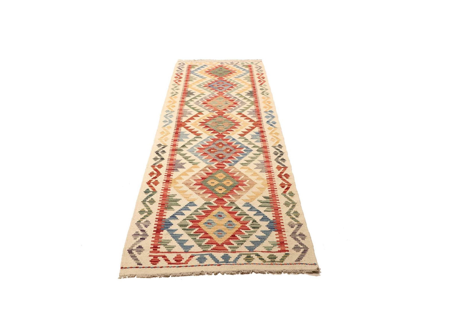 (Verkauft) Handgewebter Kelim 78 x 240cm aus Schurwolle, rustikaler Stil