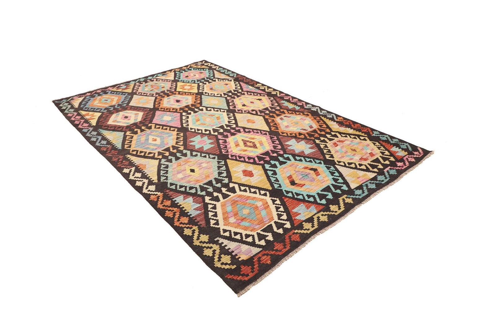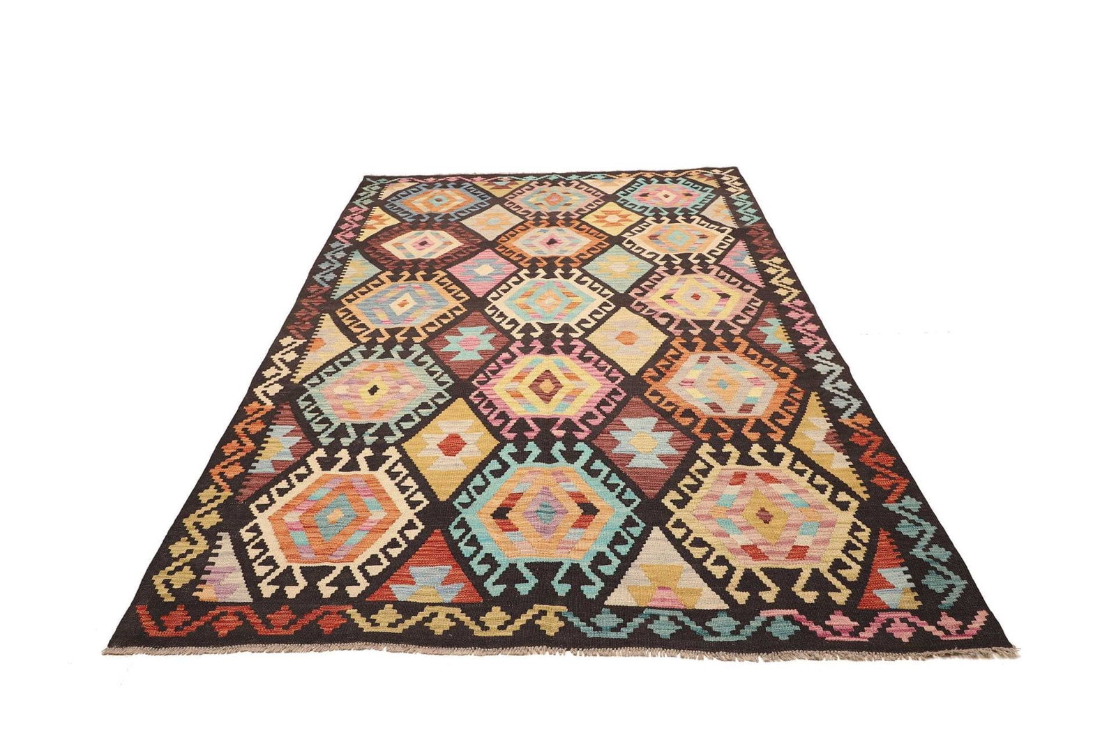 Handgewebter Kelim Teppich 172 x 247 cm aus Schurwolle, bunt
