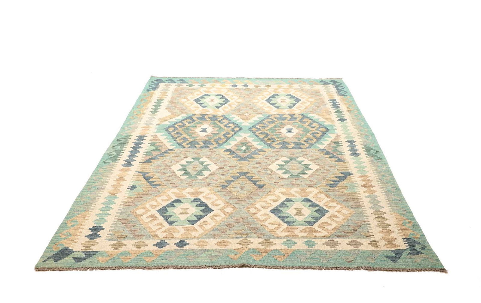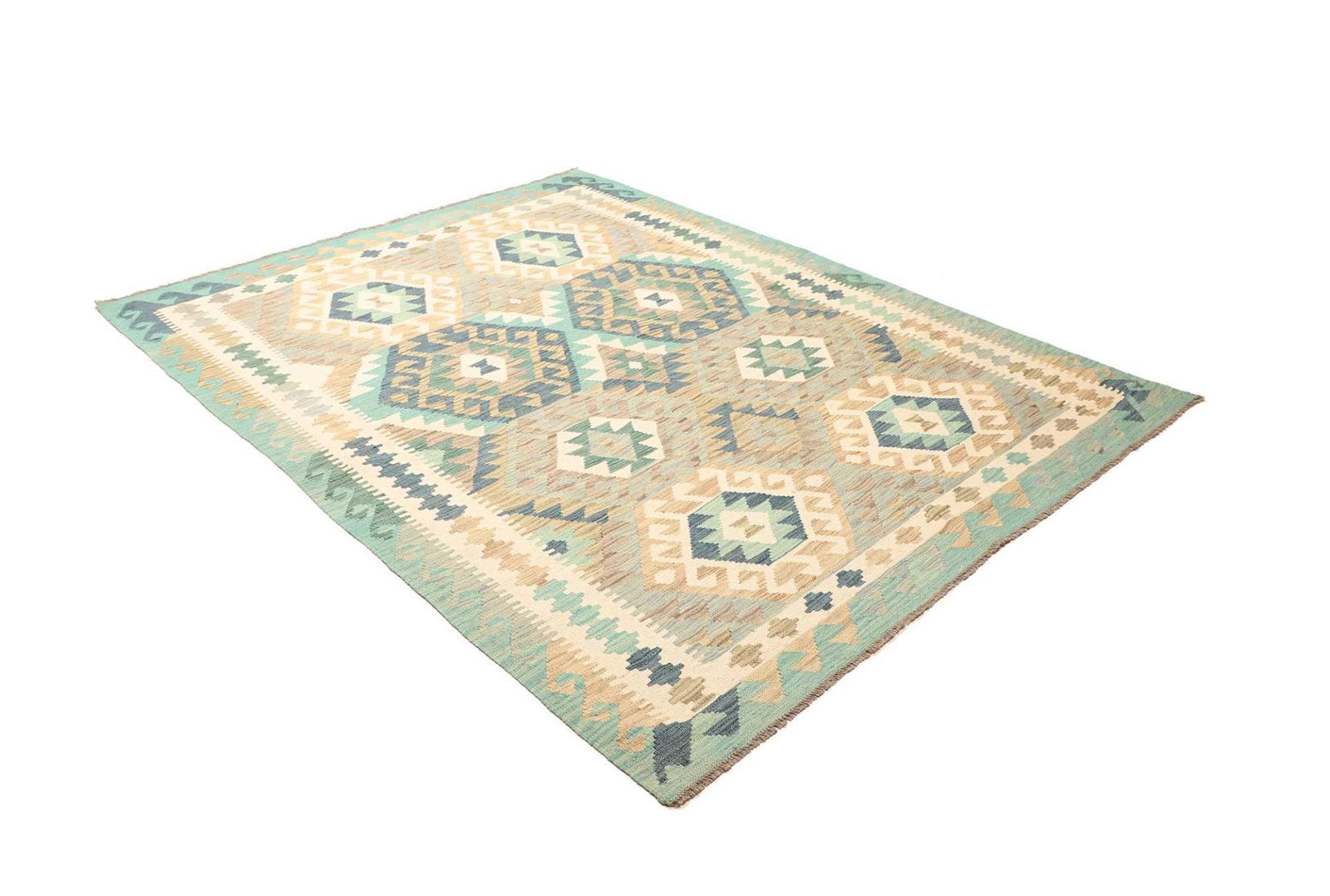 633$Ursprünglicher Preis war: 633$561$Aktueller Preis ist: 561$Kelim Teppich | Knotendichte: ca. 200.000 Knoten/m² | Material: 100% Schurwolle (Flor), 100% Baumwolle (Kette) | Größe: 180 x 236 cm | Herkunft: Pakistan | Zustand: Handgewebte Qualität mit rustikalem Flair