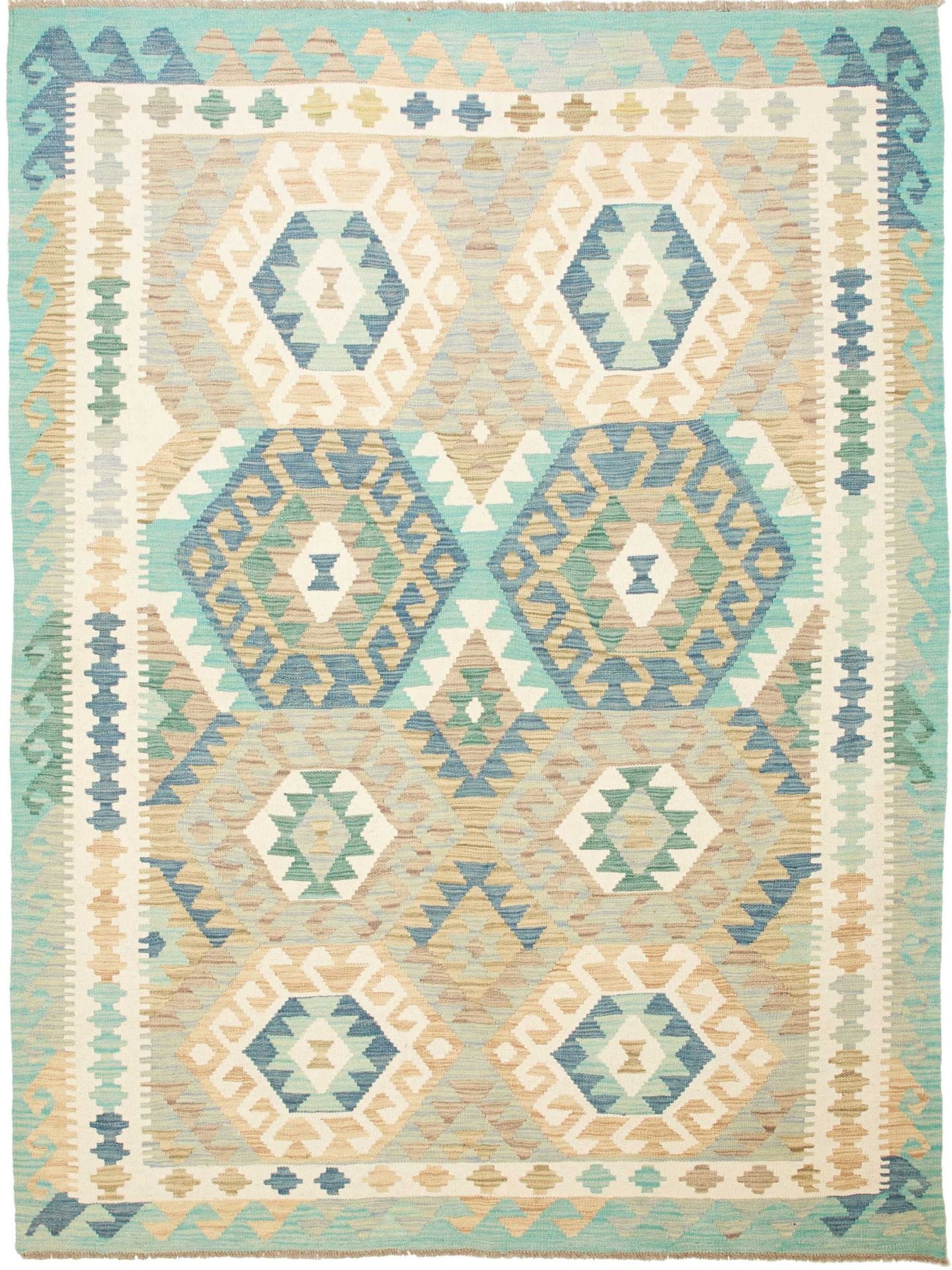 Handgewebter Kelim Teppich aus Schurwolle, bunt