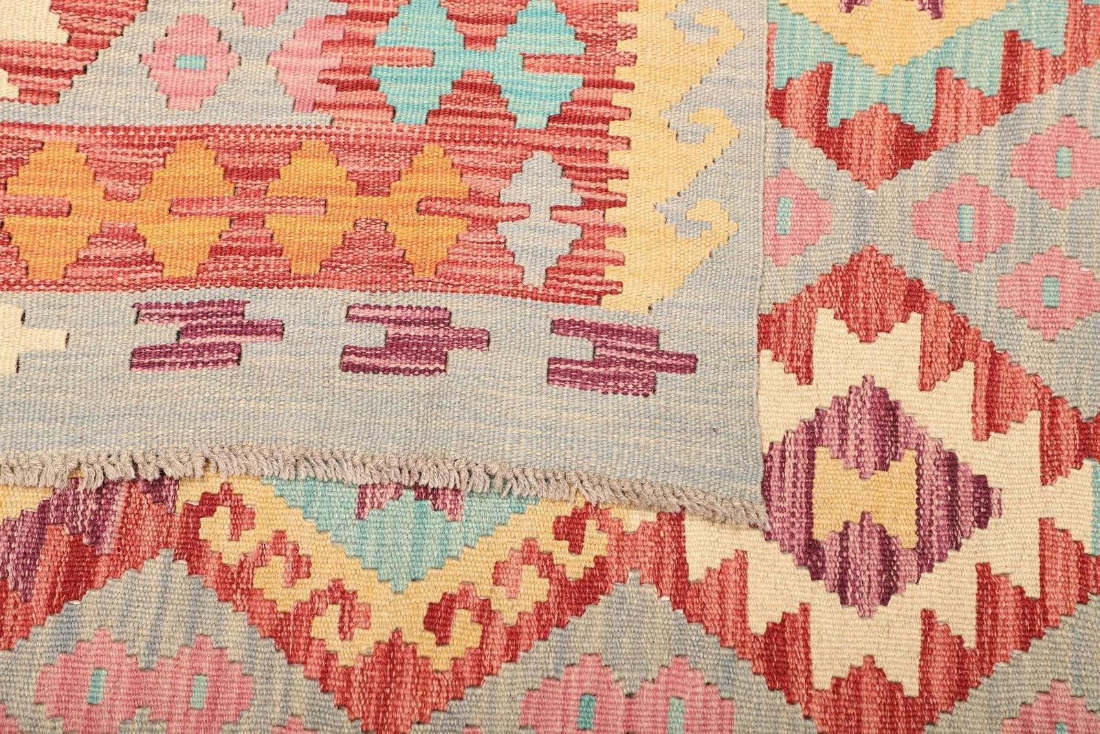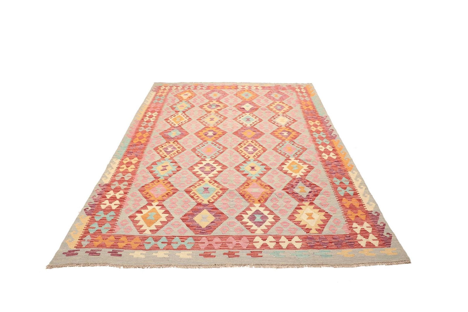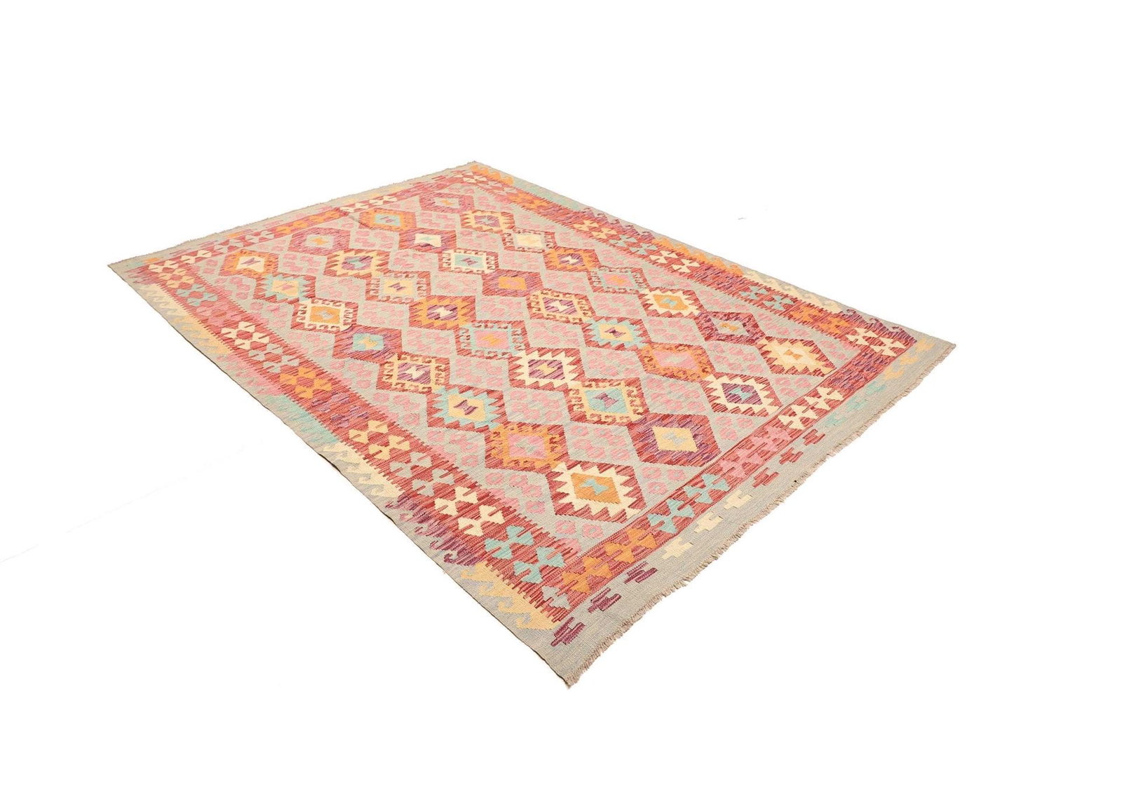 Handgewebter Kelim Teppich 180 x 246cm aus Schurwolle, bunt