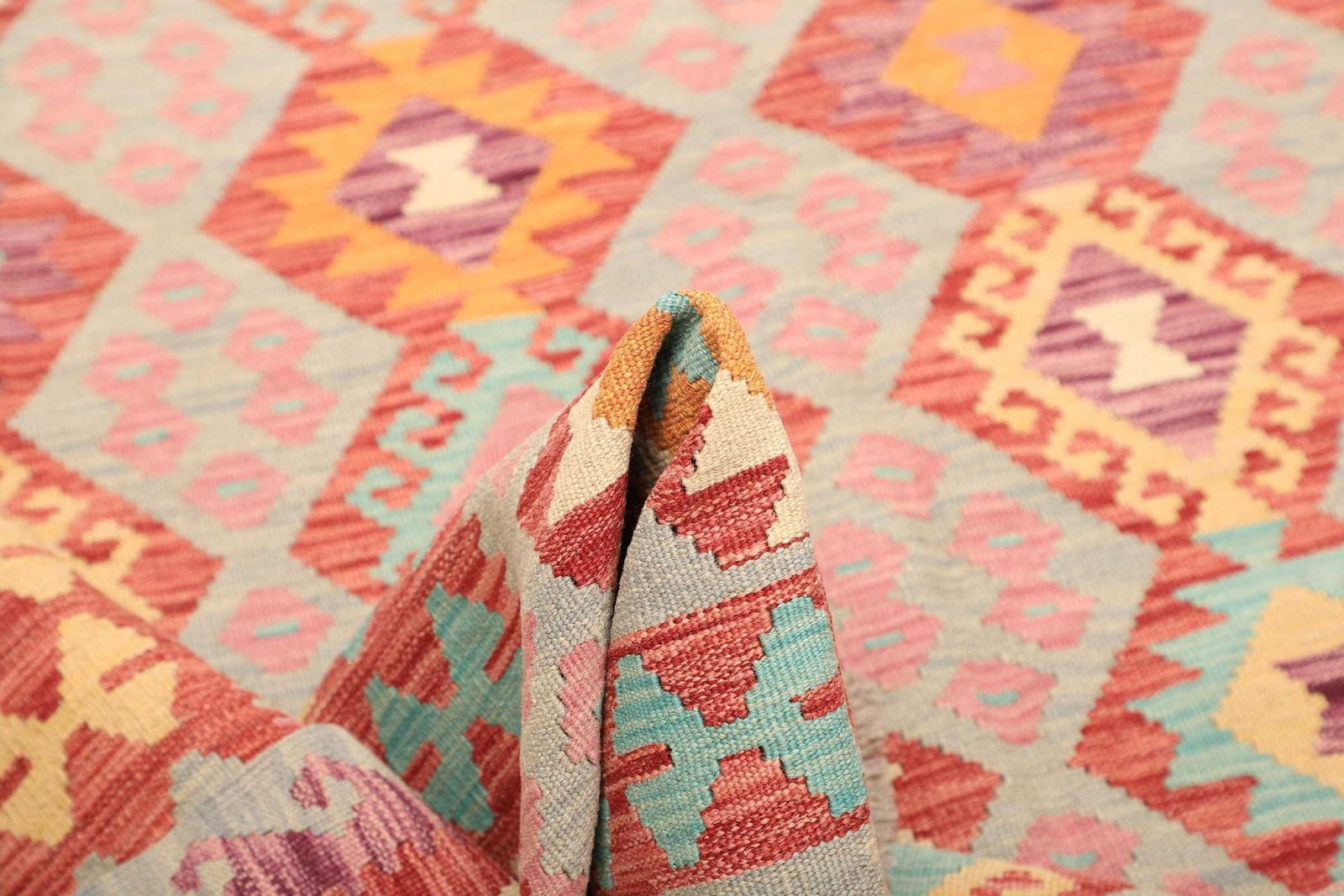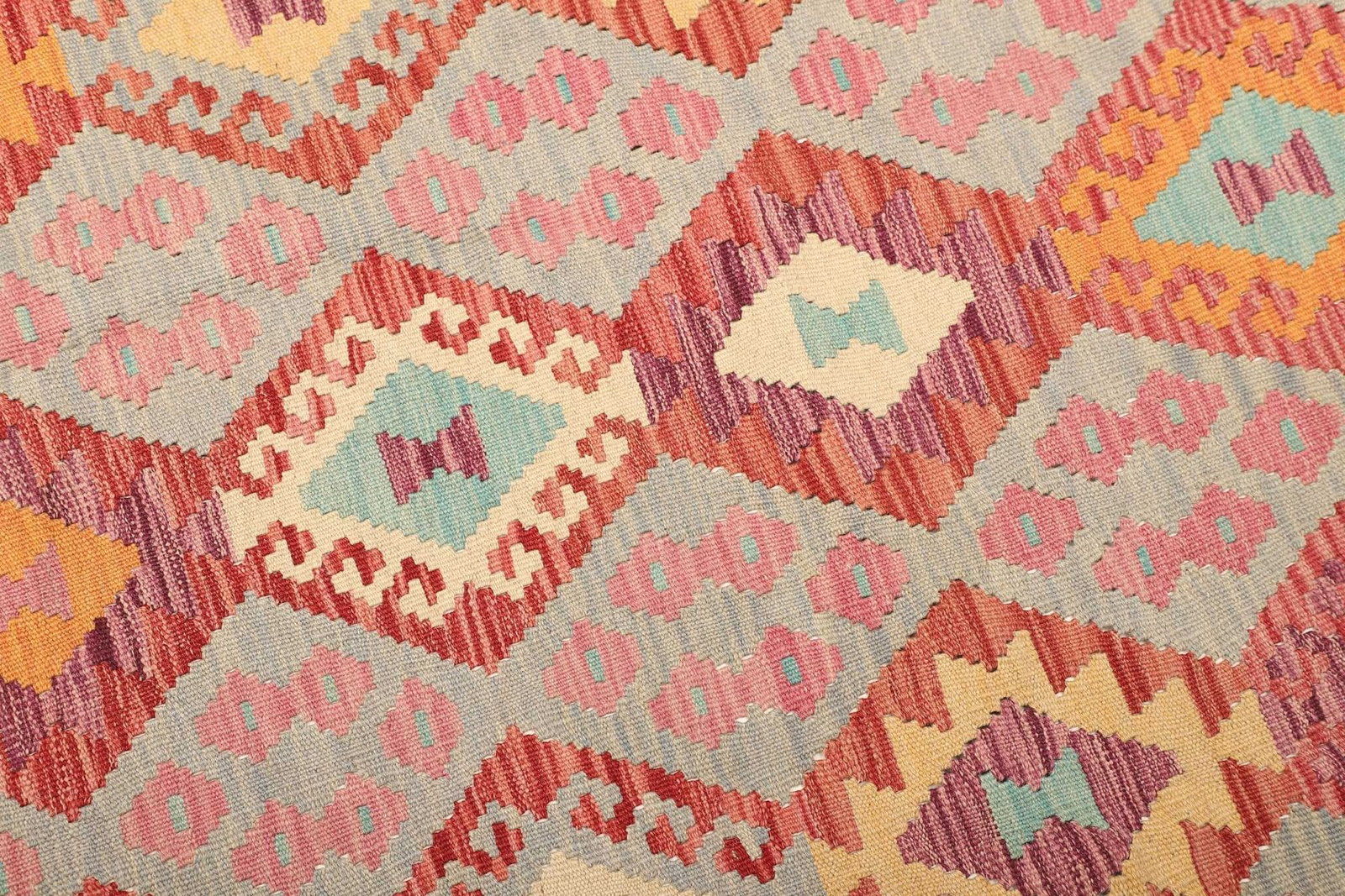 Handgewebter Kelim Teppich aus Schurwolle, bunt