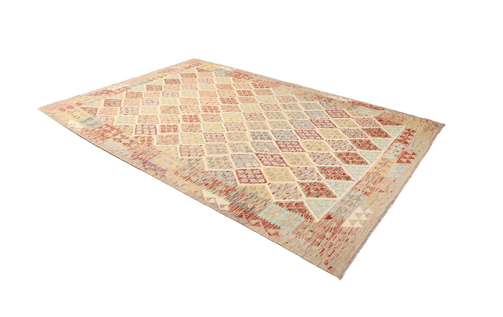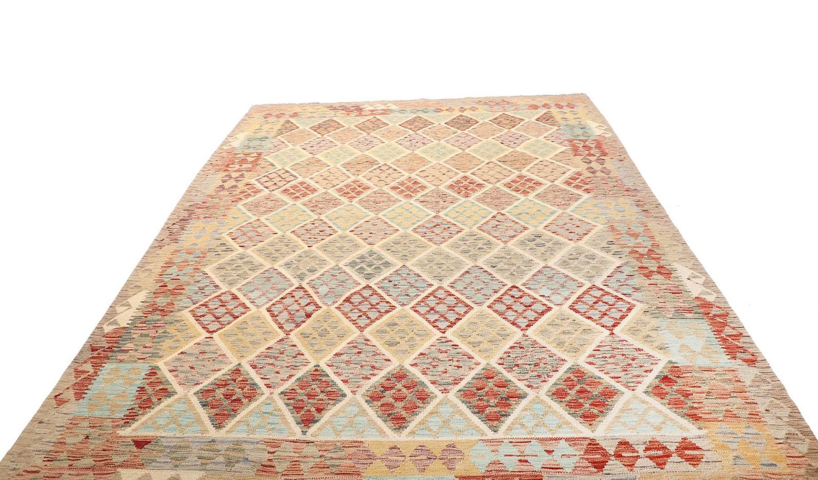 1040$Ursprünglicher Preis war: 1040$941$Aktueller Preis ist: 941$Kelim Teppich | Knotendichte: ca. 200.000 Knoten/m² | Material: 100% Schurwolle | Größe: 210 x 296 cm | Zustand: Handgewebte Qualität | Herkunft: Pakistan | Florhöhe: ca. 5 mm | Kette: 100% Baumwolle