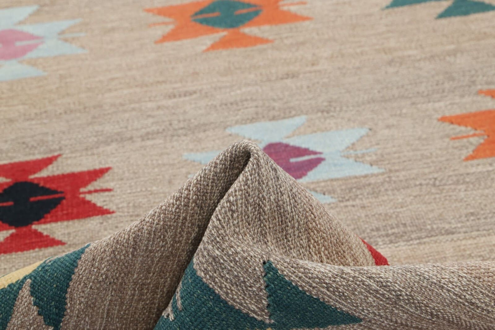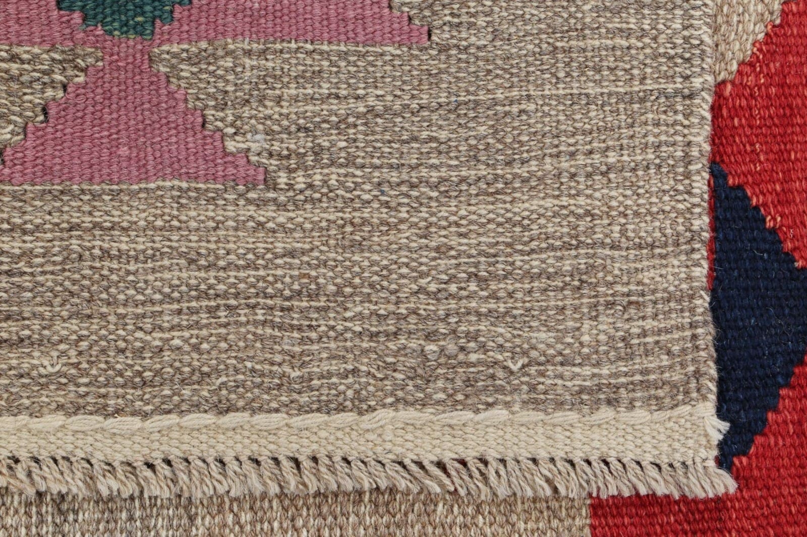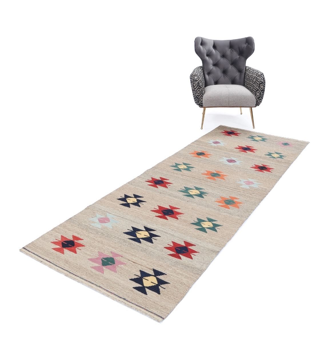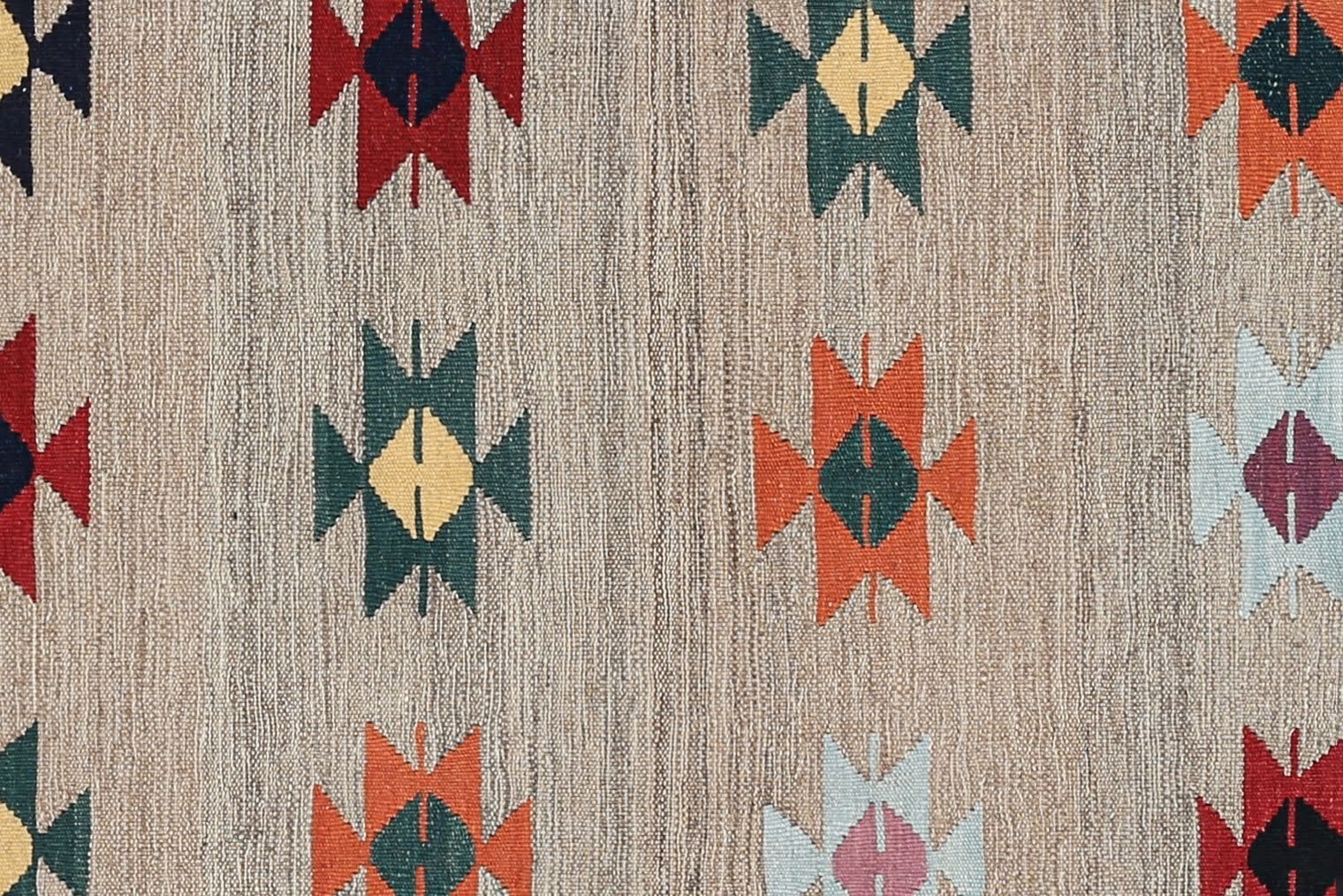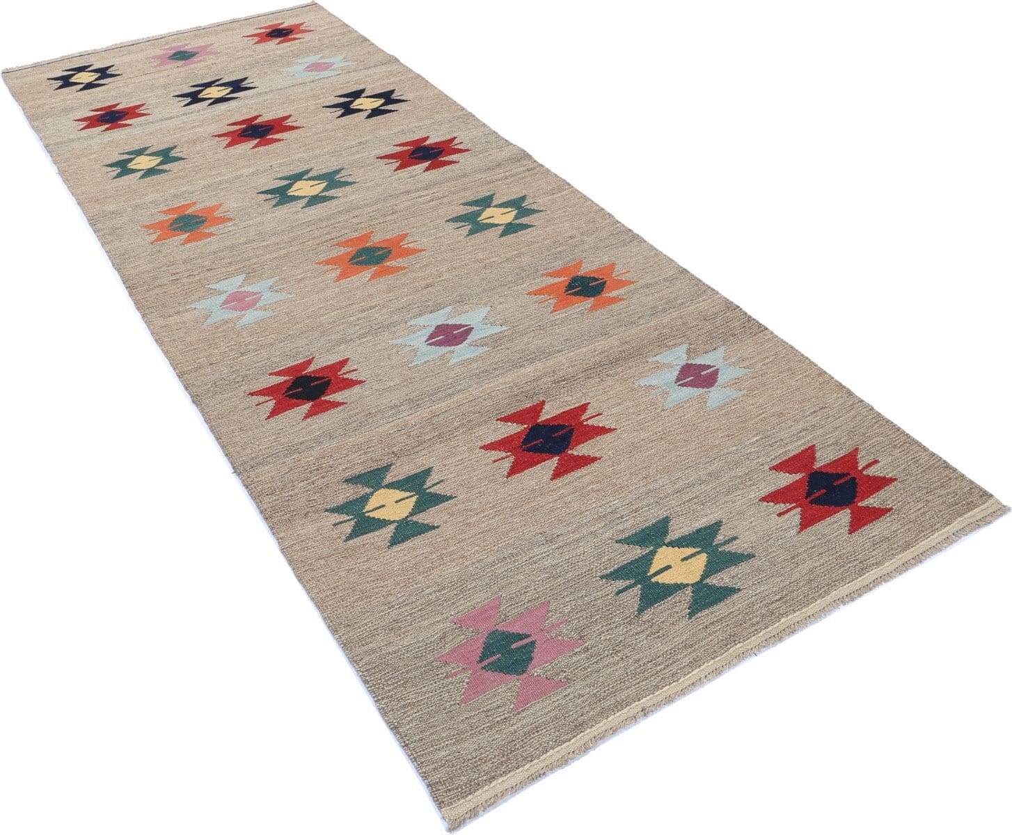Neu handgewebter Kelim | Größe: 264 cm x 101 cm | Material: 100% Wolle | Zustand: Neu ohne Etikett | Stil: Art déco | Muster: Mehrfarbig | Webart: Flachgewebe | Für Fußbodenheizung geeignet | Herkunft: Regionale Handwerkskunst