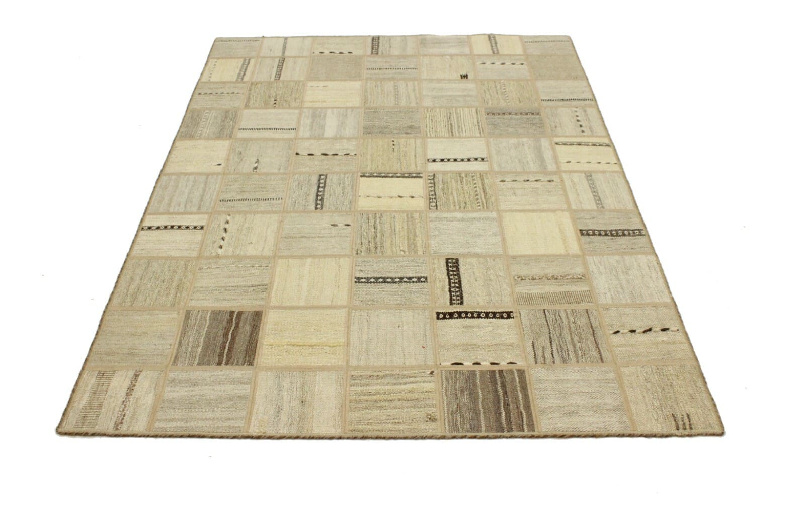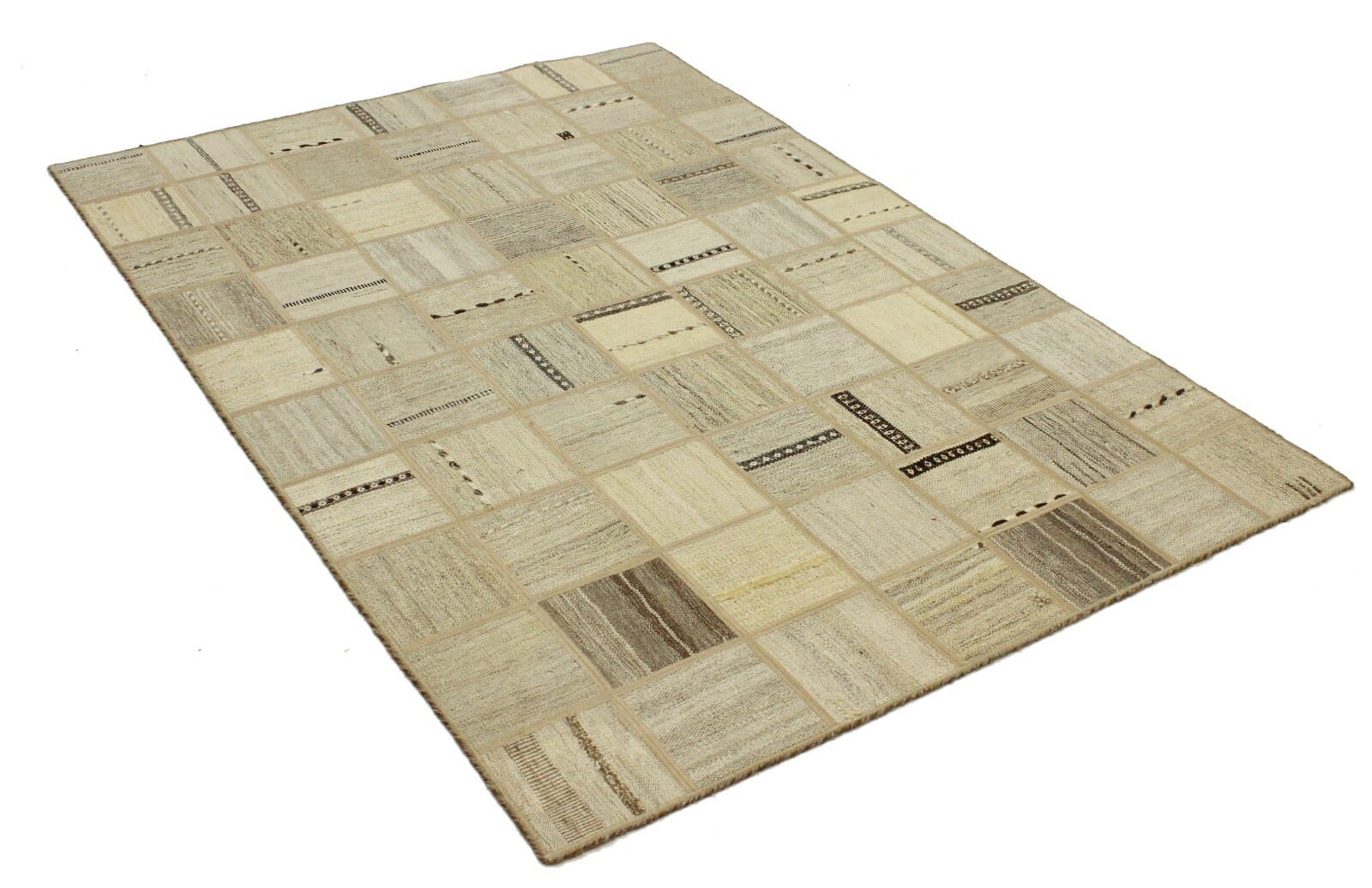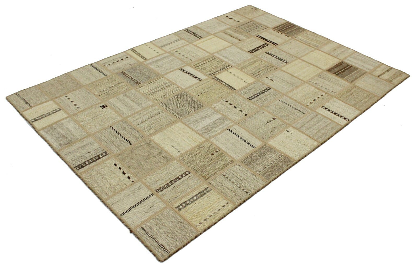 Handgewebter Orientteppich 199×139 cm, modernes Kelim Patchwork