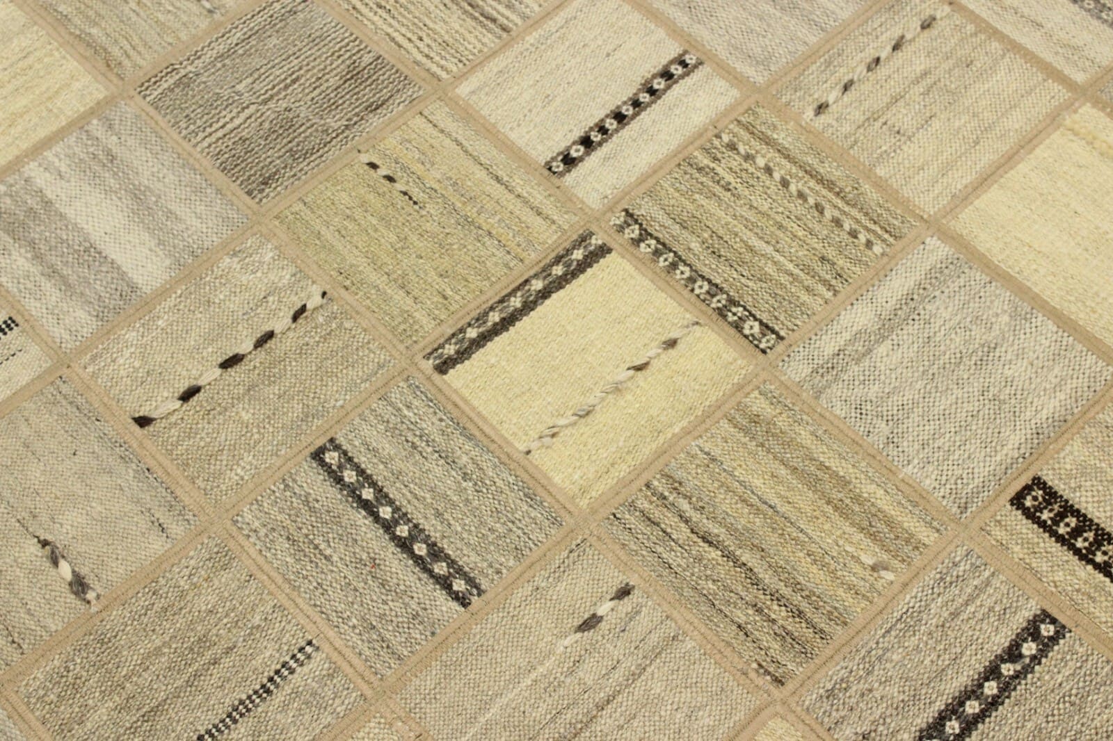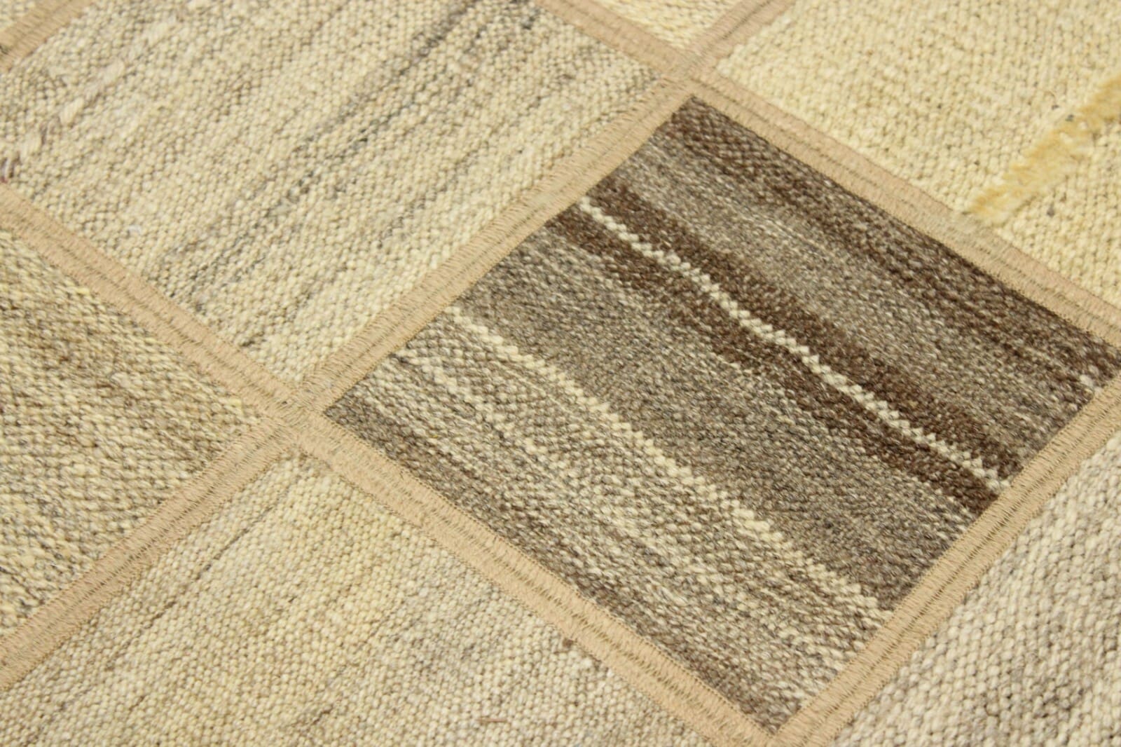 Original Handgewebter Modern Kelim Patchwork | Größe: 199 x 139 cm | Material: 100% Baumwolle und 100% Wolle | Zustand: Neu ohne Etikett | Muster: Geometrisch | Stil: Art déco | Besonderheiten: Antirutsch, für Fußbodenheizung geeignet, leicht zu reinigen