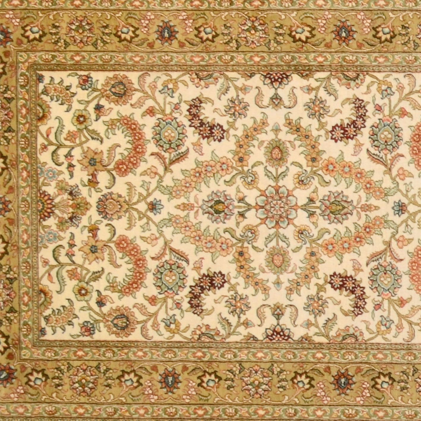 Der Hereke Orientteppich steht als Symbol für höchste Qualität und exzellente Handwerkskunst. Seide ist nicht nur für ihre Eleganz bekannt, sie bietet auch eine unvergleichliche Strapazierfähigkeit. Durch die sorgfältige Handknüpfung wird jeder Teppich zu einem Unikat – ein Kunstwerk, das von talentierten Handwerkern gefertigt wird. Die Knotendichte ist ein entscheidendes Merkmal dieses Teppichs: je höher sie ist, desto detaillierter und feiner sind die Muster und Designs, die sich im Teppich präsentieren. Der Zustand dieses Teppichs ist hervorragend, was bedeutet, dass er sowohl als stilvolles Dekorationsobjekt als auch als funktionales Stück in Ihrem Zuhause eingesetzt werden kann.