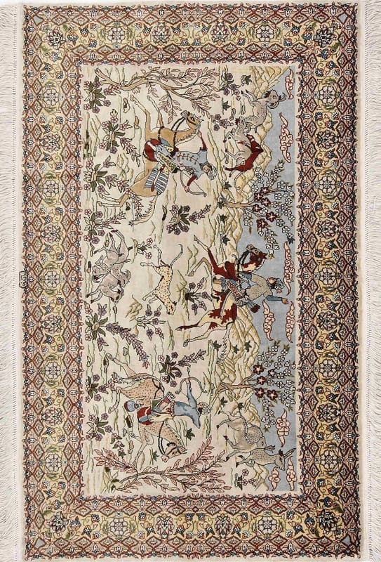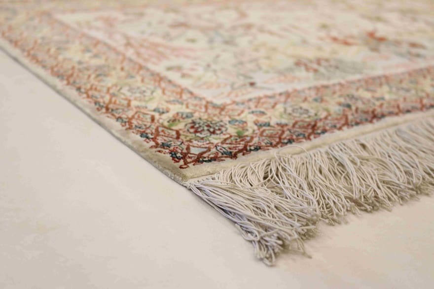 Neu | Handgeknüpft | Knotendichte: 1.000.000 Knoten/m² | Material: 100% Seide | Größe: 95×58 cm | Farbe: Weiß/Beige | Herkunft: China | Dicke: ca. 3 mm | Gewicht: ca. 2 kg