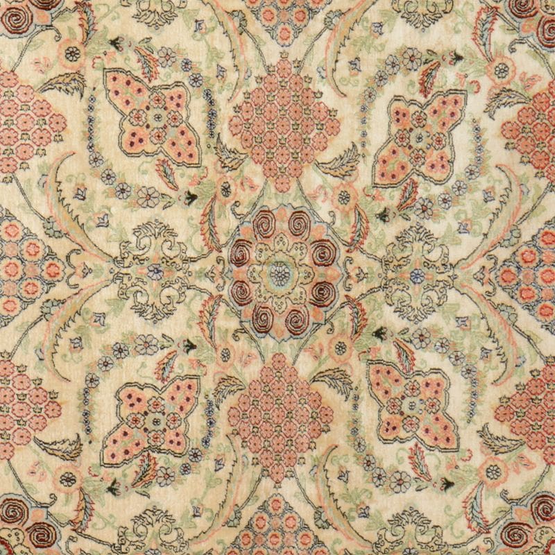 Ein weiterer Pluspunkt ist die Pflegeleichtigkeit: Seide ist weniger anfällig für Schmutz und Staub, was die Reinigung erheblich vereinfacht. Um die Langlebigkeit des Teppichs zu gewährleisten, wird jedoch empfohlen, ihn regelmäßig von Fachleuten reinigen zu lassen, um die Farben und die Struktur zu erhalten.