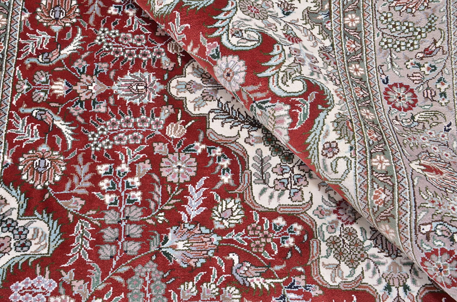 Ein besonderer Aspekt des Hereke Teppichs ist seine einzigartige Knotentechnik, die ihn von anderen Teppichen unterscheidet. Mit einer hohen Knotendichte wird jede Linie und jedes Detail so präzise gearbeitet, dass der Teppich sowohl aus der Nähe als auch aus der Ferne beeindruckt. Darüber hinaus handelt es sich bei einem handgeknüpften Teppich um ein nachhaltiges Produkt, da die verwendeten Materialien und die Fertigungstechnik umweltfreundlich sind. Dies macht den Hereke Teppich nicht nur optisch ansprechend, sondern auch zu einer verantwortungsbewussten Wahl für Ihr Zuhause.