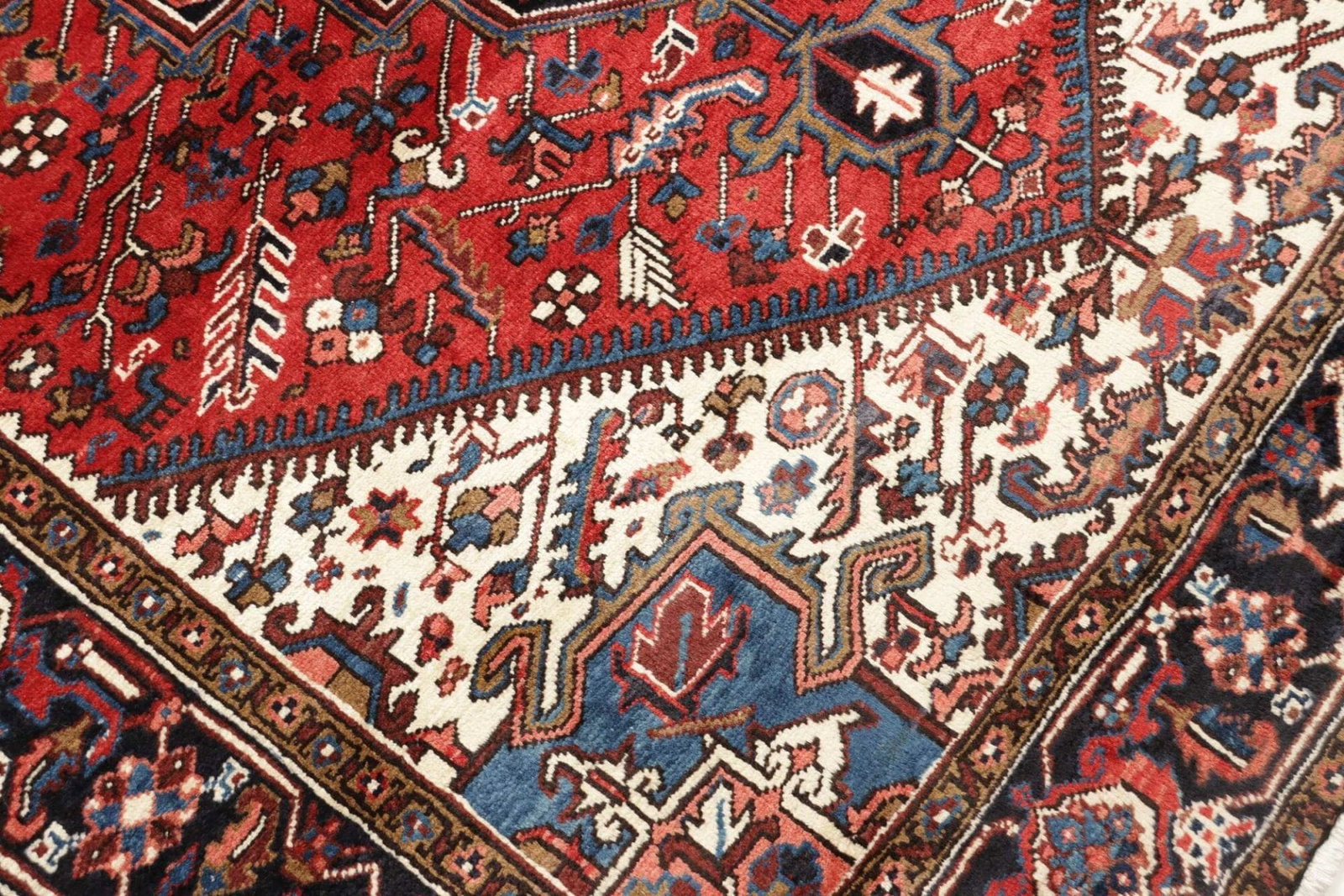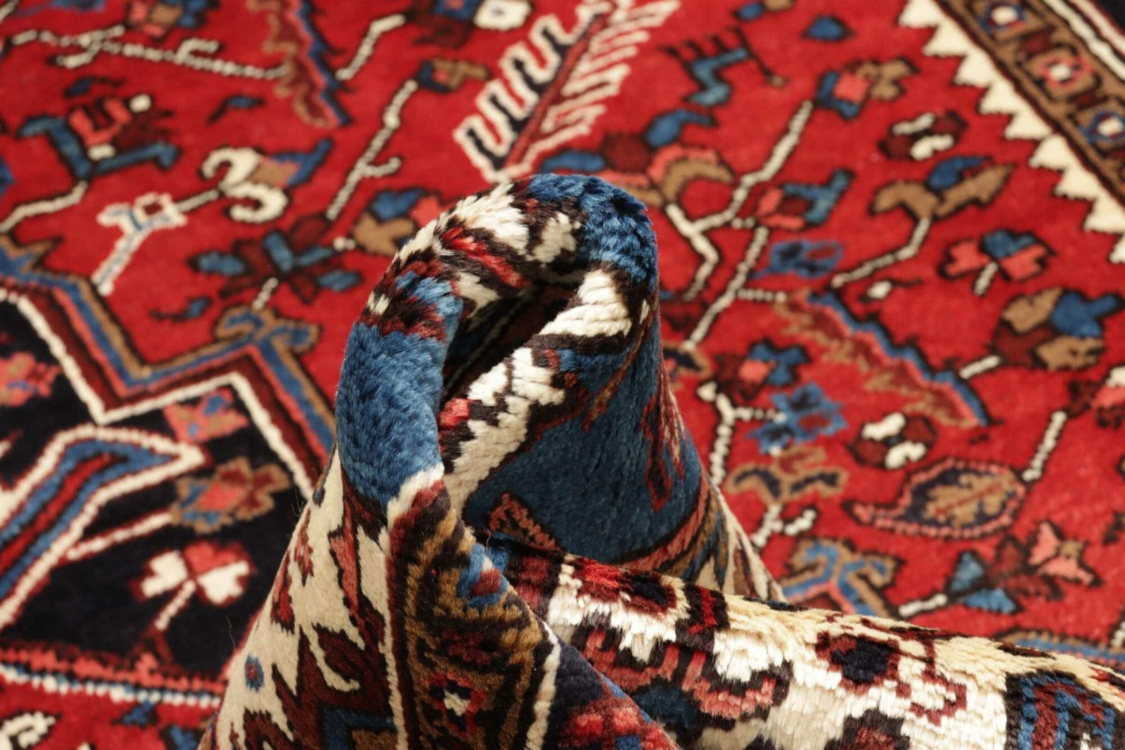 Heriz Teppich | Knotendichte: ca. 200.000 Knoten/m² | Material: 100% Schurwolle | Größe: 206 x 300 cm | In gutem Zustand | Herkunft: Iran | Verarbeitung: Handgeknüpft | Geometrisches Muster in rötlichen Tönen