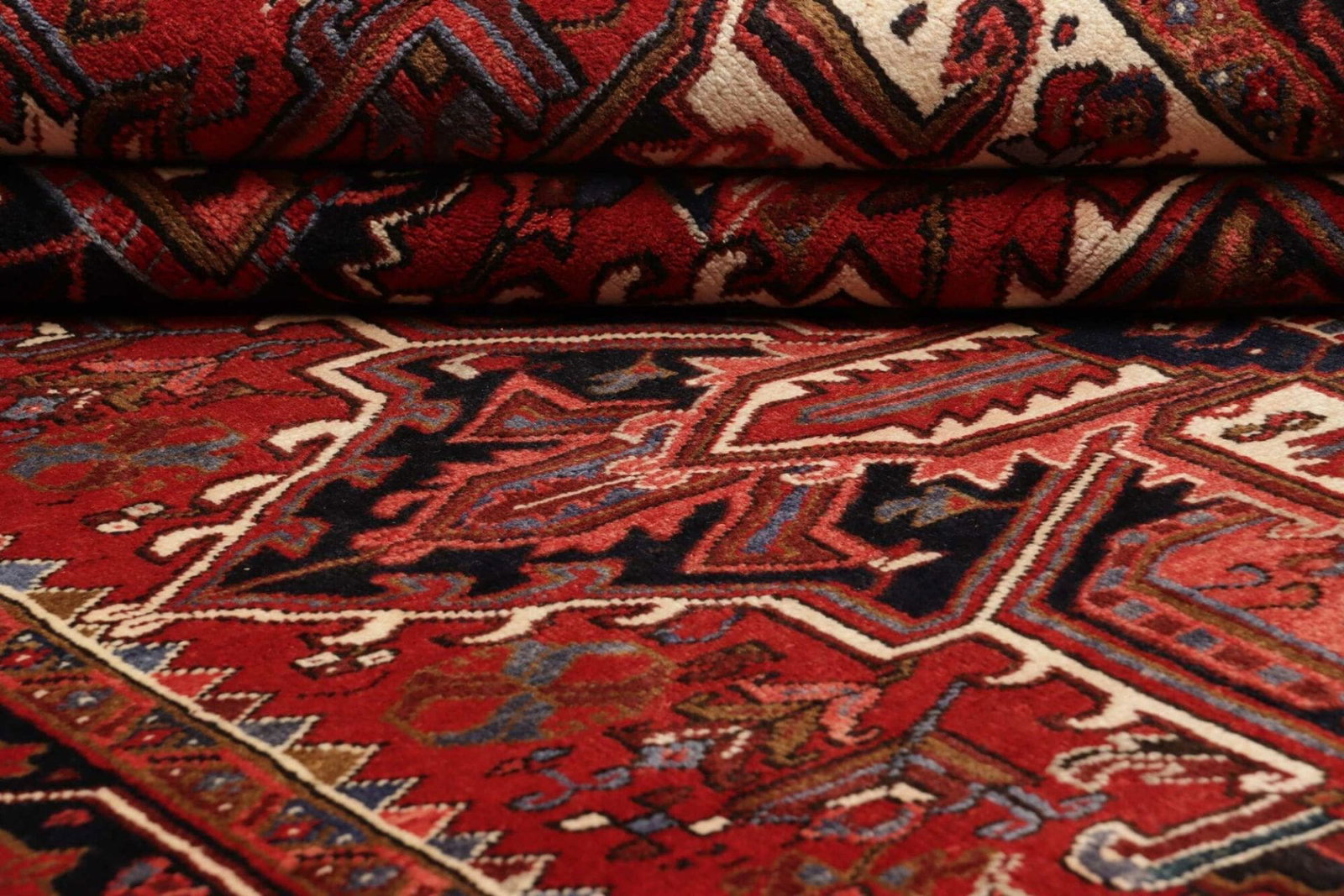 Die Teppiche aus Heriz zeichnen sich durch eine robuste Verarbeitung aus und sind für ihre Farbintensität und Langlebigkeit bekannt. Diese Region ist berühmt für den Einsatz kräftiger Farben, die durch natürliche Farbstoffe erzielt werden. Die Verwendung von Wolle aus einheimischen Schafen trägt zur einzigartigen Qualität und zum besonderen Charakter des Teppichs bei.