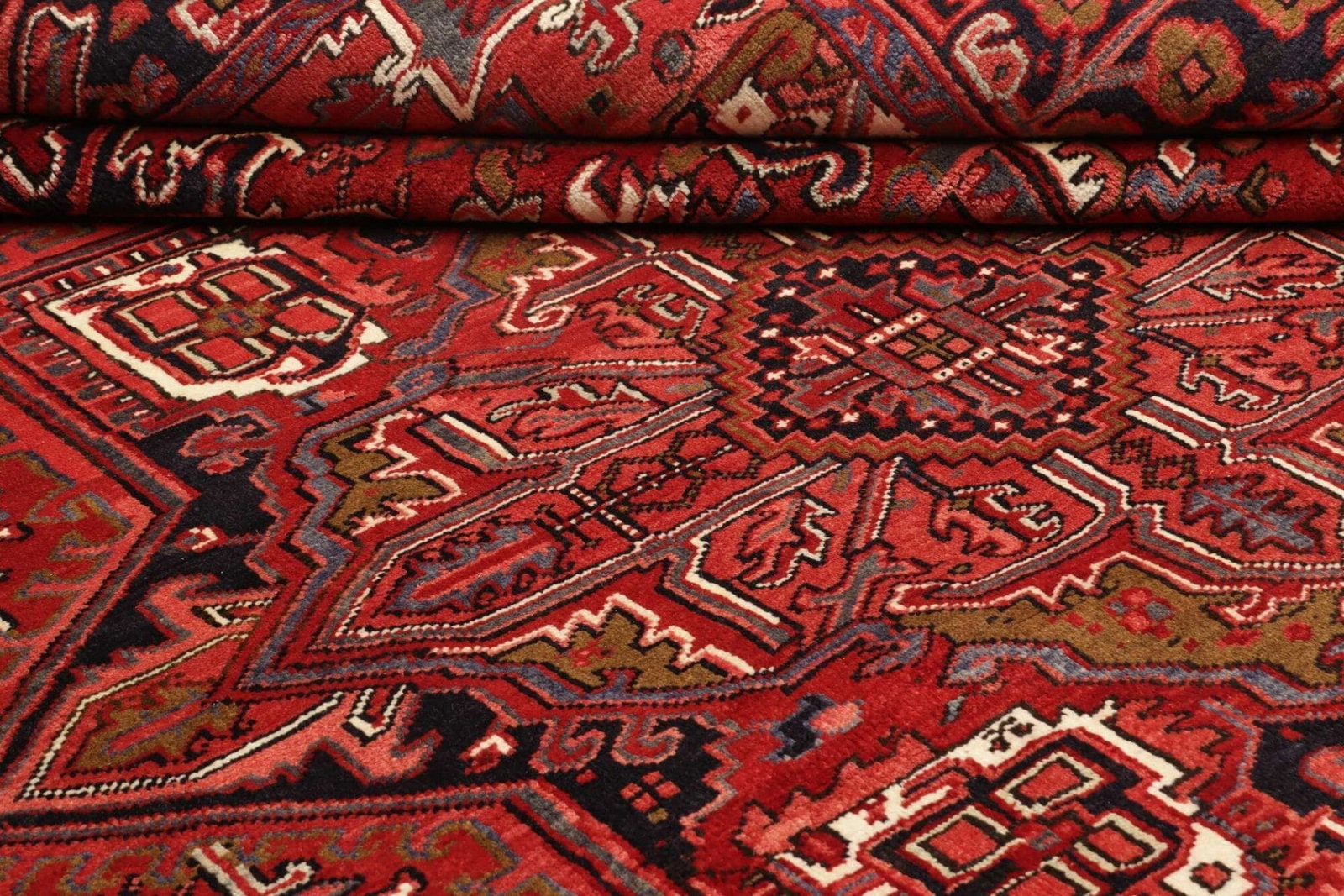 Heriz ist eine Stadt im Norden des Irans, die für ihre beeindruckenden und charakteristischen Teppiche bekannt ist. Die Teppichknüpftradition in dieser Region reicht bis ins 19. Jahrhundert zurück. Heriz Teppiche sind vor allem für ihre geometrischen Designs und kräftigen Farben bekannt, die durch die Verwendung von natürlichen Farbstoffen entstehen. Die Mustervariationen zeigen oft stilisierte Blumen und traditionelle Motive, die tiefe symbolische Bedeutungen tragen.