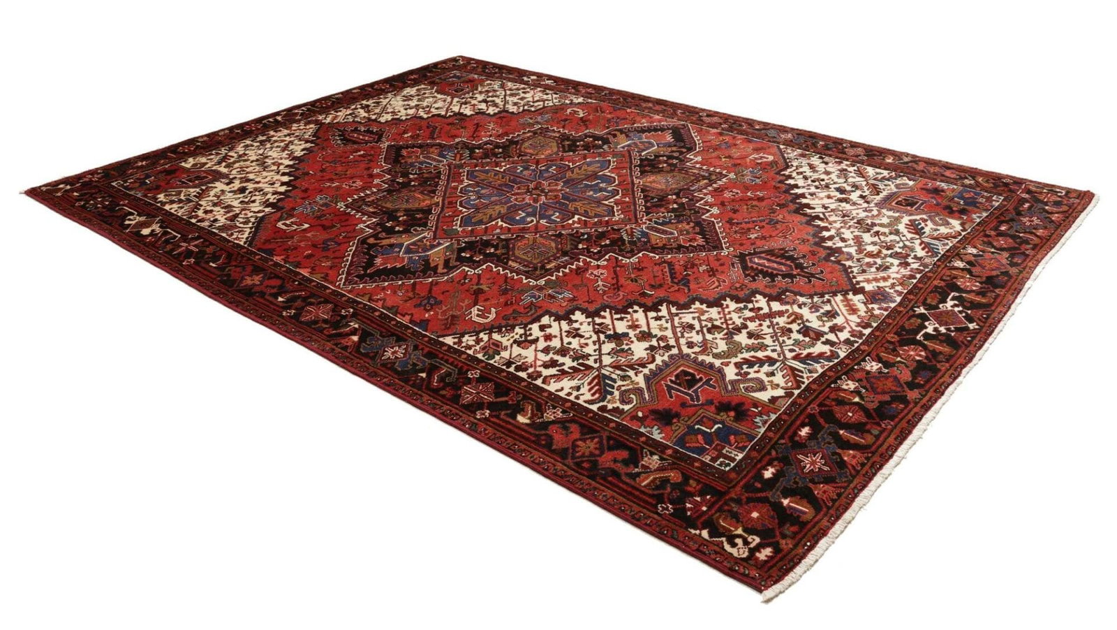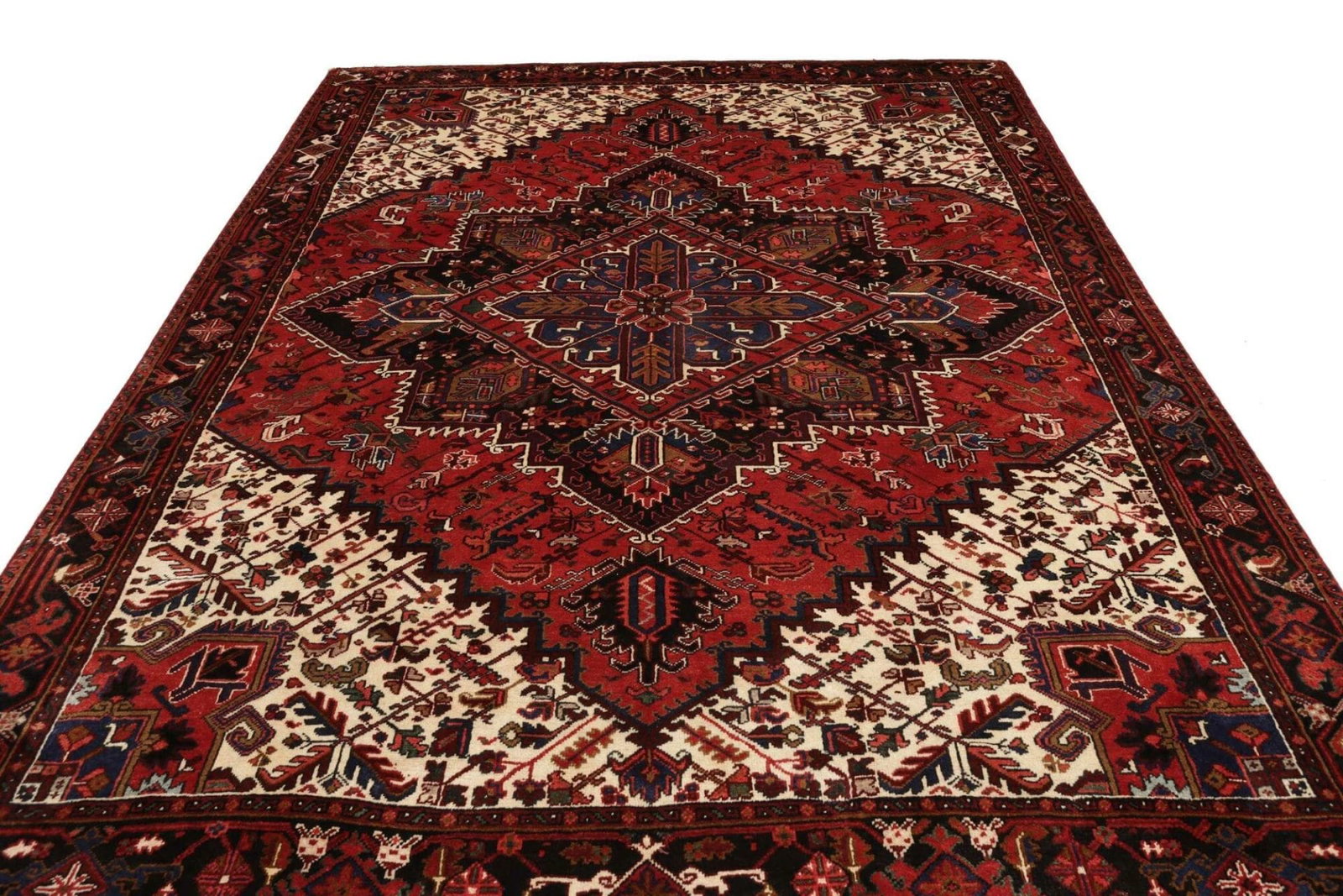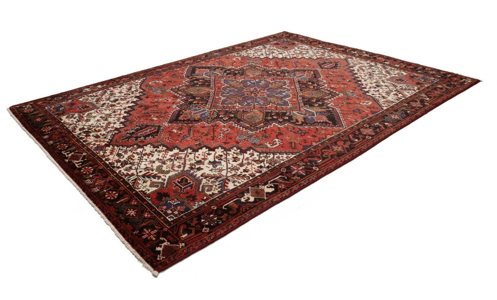 3288$Ursprünglicher Preis war: 3288$2952$Aktueller Preis ist: 2952$Heriz Teppich | Knotendichte: ca. 200.000 Knoten/m² | Flor: 100% Schurwolle | Kette: 100% Baumwolle | Größe: 253 x 340 cm | In hervorragendem Zustand | Herkunft: Iran | Handgeknüpfte Qualität | Geometrische Muster in rötlichen Tönen