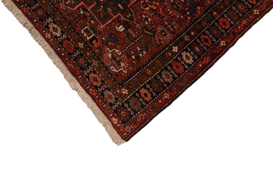 Um die Schönheit Ihres Heriz Teppichs zu bewahren, sollten Sie ihn regelmäßig absaugen und bei Bedarf professionell reinigen lassen. Flecken sollten sofort mit einem feuchten, sauberen Tuch behandelt werden.