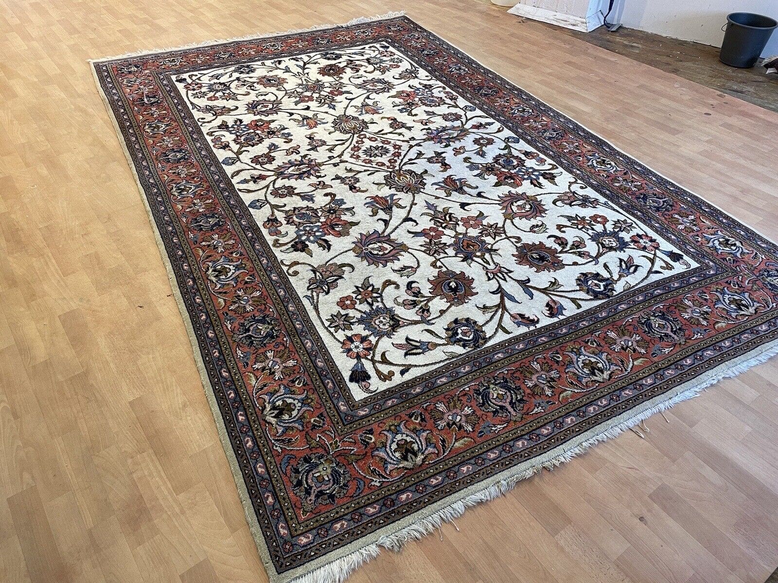 Hochklassiger Perserteppich Sarough | Knotendichte: Hochwertige Schurwolle | Größe: 320×210 cm | Muster: Durchgemustert mit roter Bordüre | Zustand: Neu ohne Etikett | Stil: Traditionell Persisch/Orientalisch | Material: Wolle und Baumwolle | Besonderheiten: Für Fußbodenheizung geeignet | Florhöhe: 10 mm | Form: Rechteckig