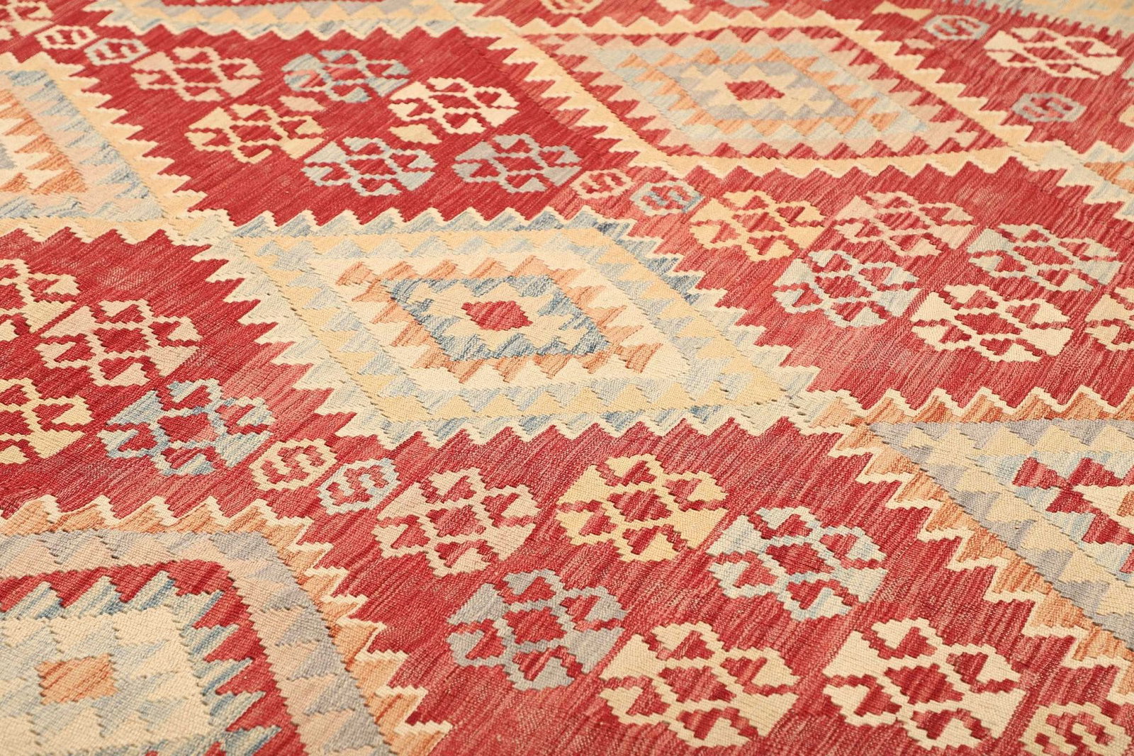 Ein handgewebter Kelim wie dieser zeichnet sich durch seine besondere Knotendichte aus, die es ermöglicht, detailreiche Muster zu kreieren. Durch die Handarbeit entsteht eine individuelle Note, die maschinell hergestellte Teppiche nicht erreichen können. Zudem können Kelims sowohl als Teppich als auch als Wandbehang verwendet werden, was sie zu einem vielseitigen Accessoire in Ihrem Zuhause macht. Ihre Widerstandsfähigkeit gegen Verschmutzung und Abnutzung macht sie besonders pflegeleicht und langlebig.