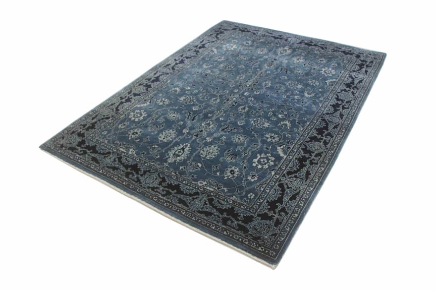 Loribaft Teppich | Knotendichte: 160.000 – 200.000 Knoten/m² | Material: Wolle und Baumwolle | Größe: 223×158 cm | In neuem Zustand | Ursprung: Indien | Verarbeitung: Handgeknüpft | Farbe: Blau/Türkis | Dicke: ca. 10 mm | Gewicht: ca. 10 kg