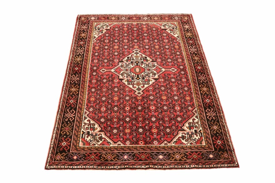 HOSENABAD Teppich | Knotendichte: 200.000 – 250.000 Knoten/m² | Material: Wolle mit Baumwollkette | Größe: 220×153 cm | Farbe: Rot/Orange | Zustand: Neu | Ursprung: Iran/Persien | Verarbeitung: Handgeknüpft | Dicke: ca. 8 mm | Form: Rechteckig