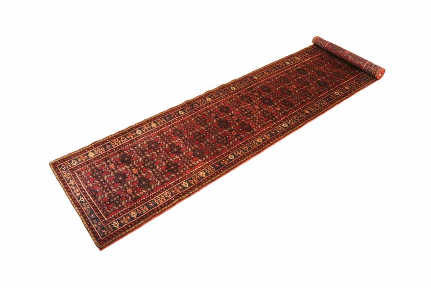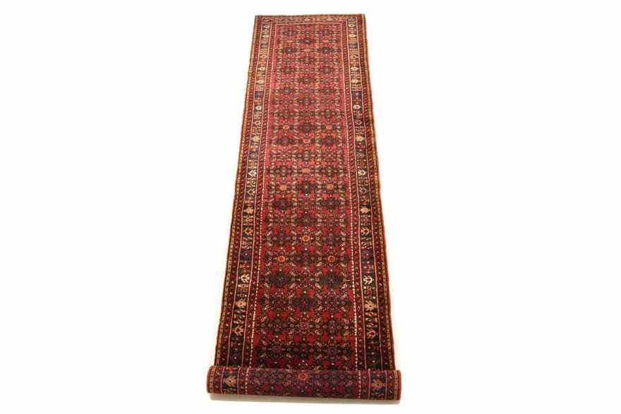 Handgeknüpfter Hosenabad Teppich | Knotendichte: 160.000 – 200.000 Knoten/m² | Material: Reine Wolle mit Baumwollkette | Größe: 417 x 91 cm | Farbe: Rot/Orange | Herkunft: Hosenabad, Persien | Zustand: Neu | Pflegeleicht und strapazierfähig