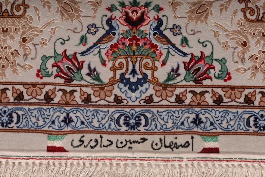 Typischerweise vereinen Isfahan-Teppiche florale Motive, geometrische Designs und oft auch antike Symbole, die tief in der persischen Mythologie verwurzelt sind. Eine besondere Bedeutung haben die Muster, die nicht nur ästhetisch ansprechend sind, sondern auch Geschichten erzählen und die Philosophie des Lebens in der persischen Kultur repräsentieren.