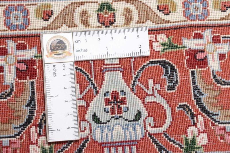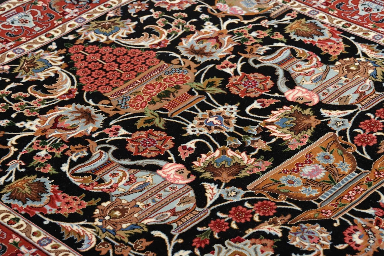 Die handgeknüpfte Technik macht jeden Teppich zu einem individuellen Kunstwerk. Die Knotendichte von 600.000 Knoten sorgt für eine extrem feine und detailreiche Gestaltung, die sowohl filigrane Muster als auch kräftige Farbtöne zulässt. Durch die sorgfältige Verarbeitung wird nicht nur die Schönheit des Teppichs gewährleistet, sondern auch seine Funktionalität und Robustheit im täglichen Gebrauch.